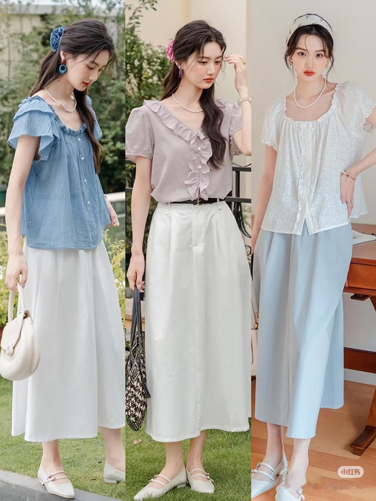 ▫️下装:白色高腰A字半身裙(遮胯藏肉,温柔利落)