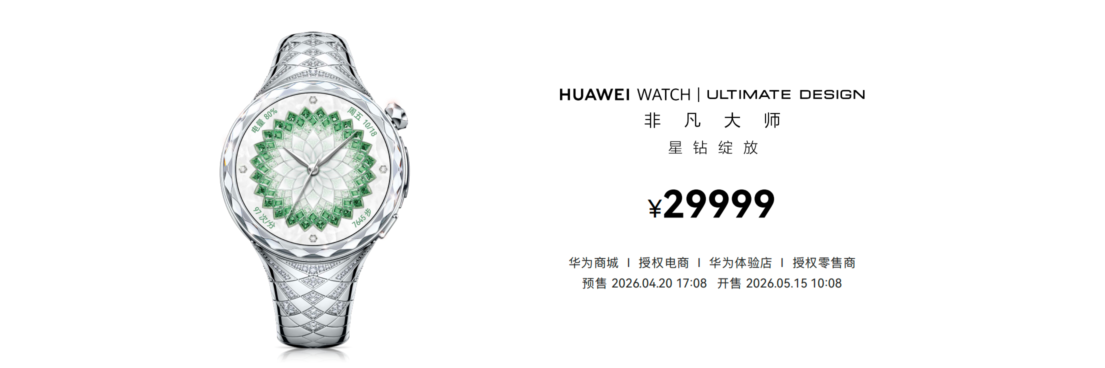 华为发布会 今天除了手机,还有几款智能穿戴推出,其中刘雯代言的星钻绽放款售价29