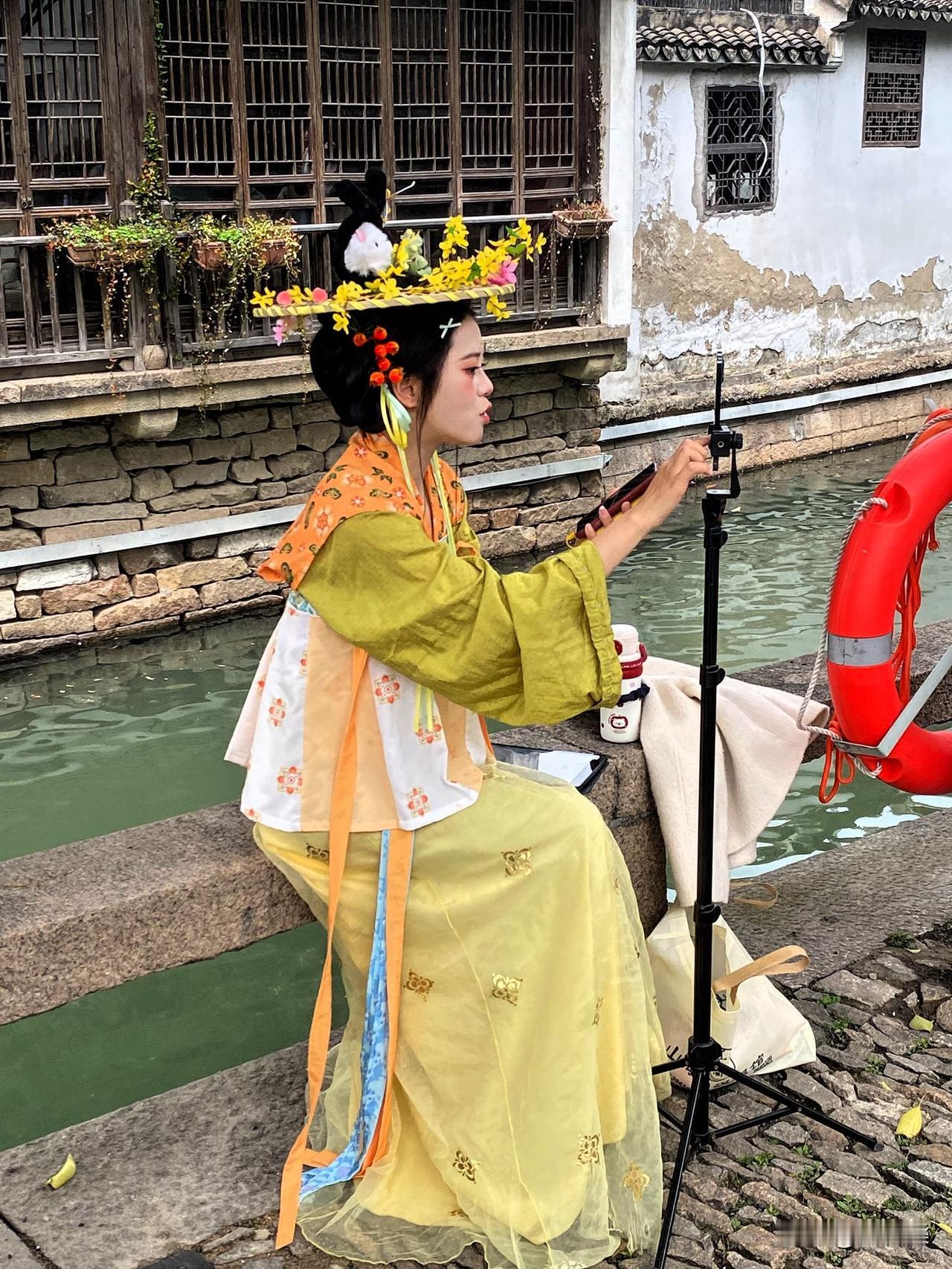一条平江路,天天都有成千上万的宋装仕女在拍照,仿佛穿越了千年时空。那些身着宋服饰的仕女们,眉眼盈盈,浅笑嫣然,举手投足间皆是古韵。