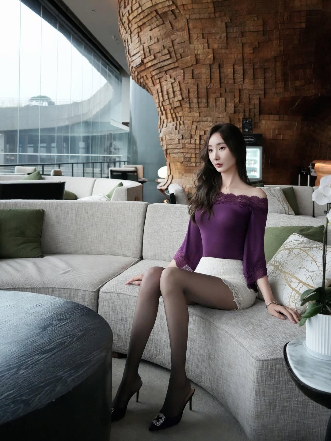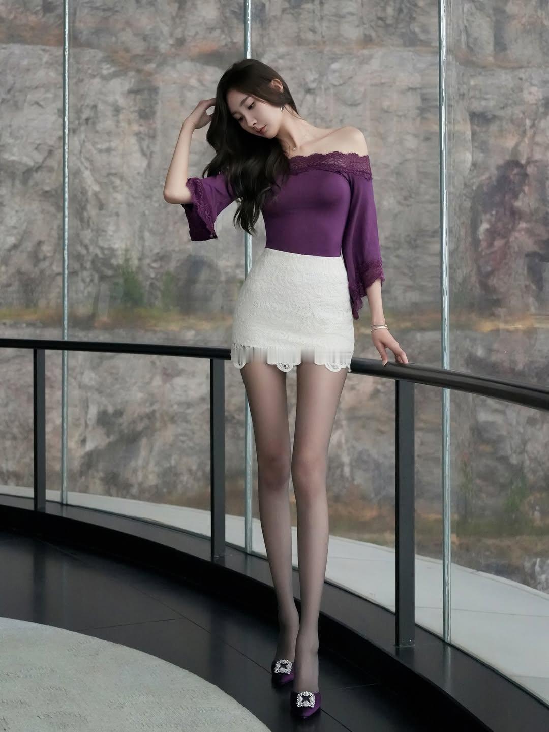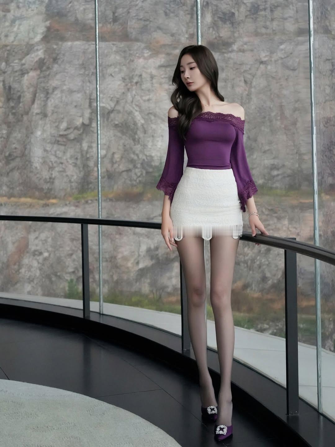 精致女神范穿搭 高级显气质穿搭 紫色与蕾丝,是刻在骨子里的温柔