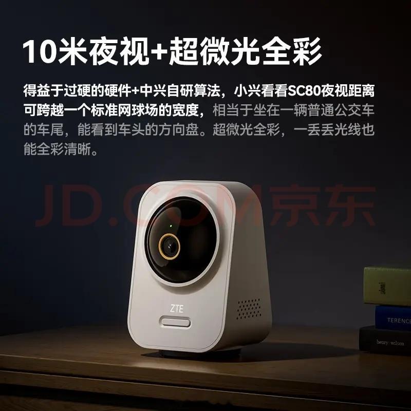 比如说家用摄像头,基于中兴路由器的网路优化、信号处理优化,提升了摄像头在弱光环境下的色彩信号处理能力和AI过滤能力,这就让摄像头在同样是500万像素的硬件条件下,依然能带来清晰的弱光显示效果。