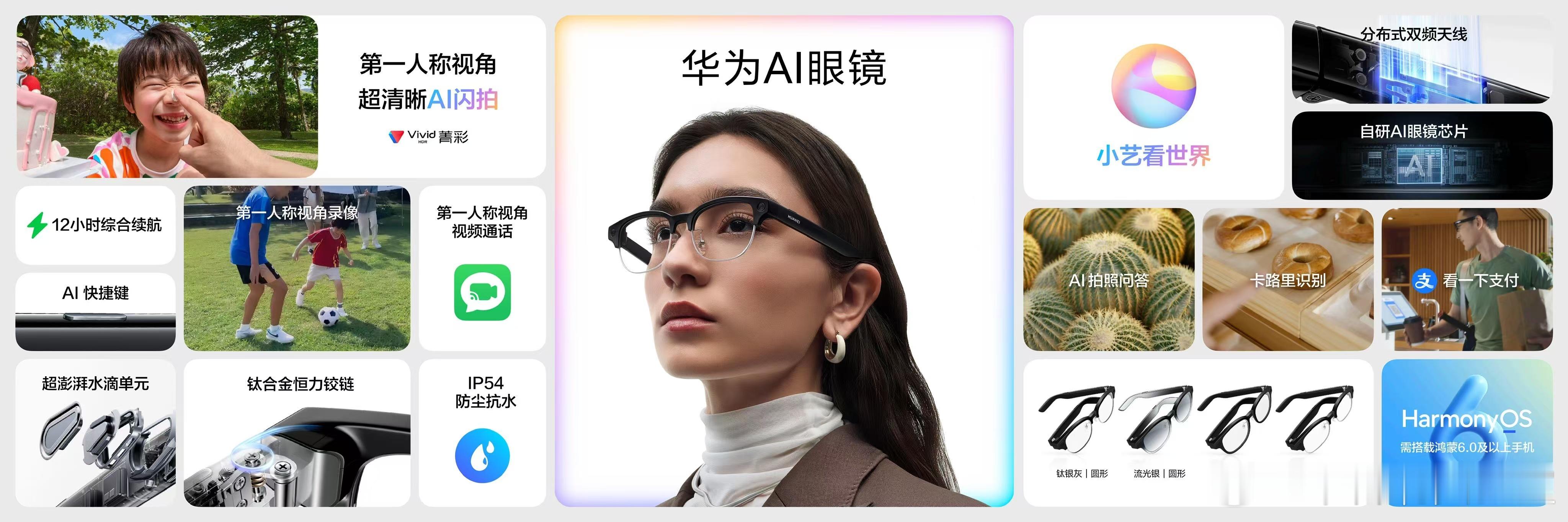 4月20日,首款华为AI眼镜 正式发布。它搭载定制的超感光摄像头与1/2.8英寸大底传感器,第一视角拍摄超清晰;同时,也是业内首款支持HDR Vivid拍照的AI眼镜。依托小艺智能体,可带来AI实时视频交互体验。镜架轻至35.5g,引领AI眼镜超轻设计。华为 AI 眼镜钛丝半框光学镜、经典全框光学镜售价2499元,经典全框太阳镜售价2899元,4月25日10:08正式开售。华为发布业界最轻AI眼镜