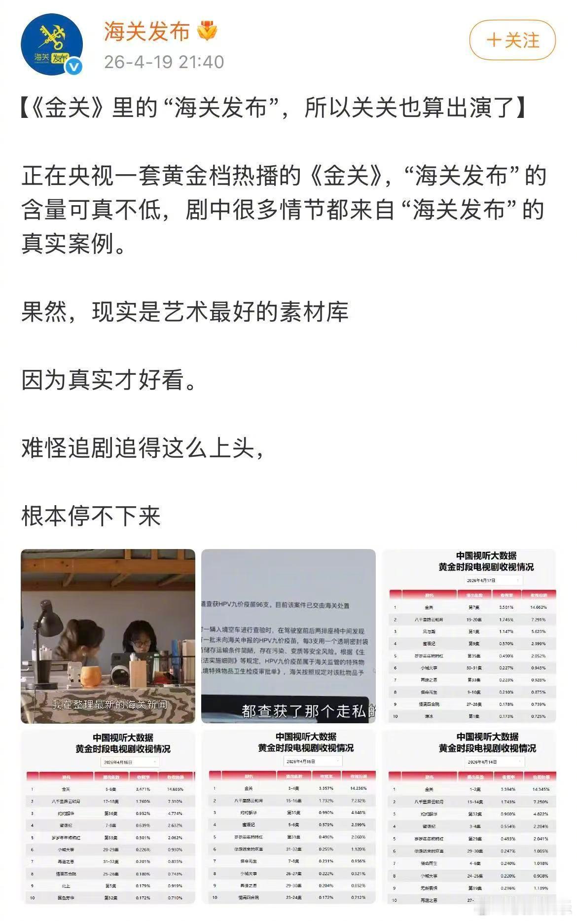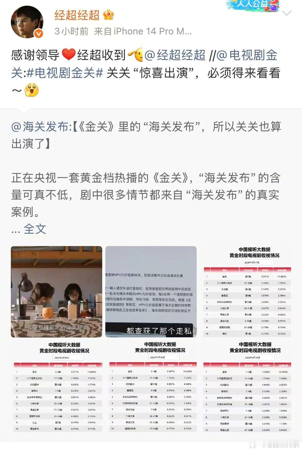 海关总署办公厅认证经超新剧经超主演的电视剧《金关》正在热播,凭借真实质感获得海关总署办公厅认可。经超饰演的海关科长形象深入人心。剧集聚焦国门守护一线,用细腻剧情展现工作细节,有效拉近大众与海关职业的距离~
