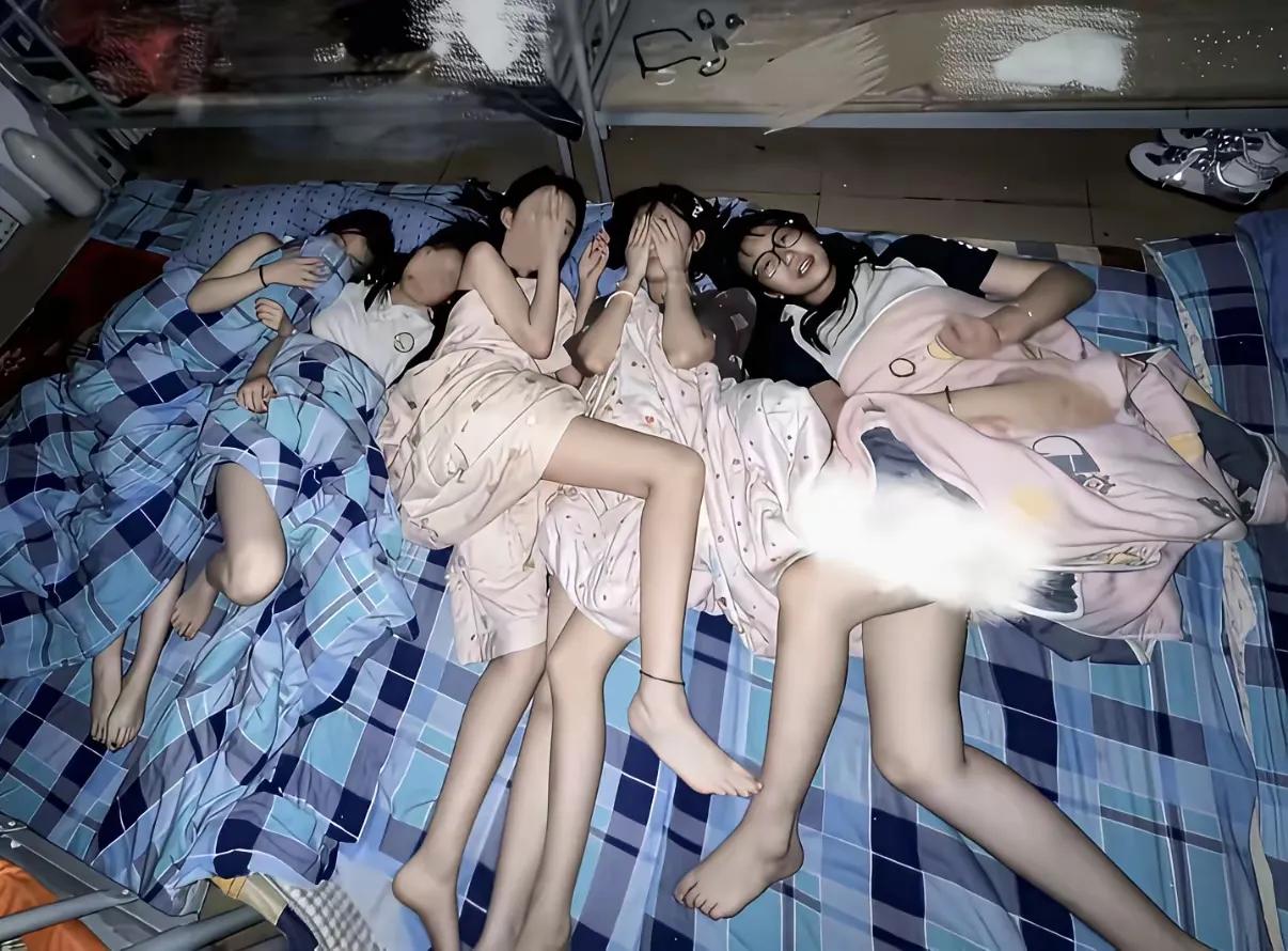 女生宿舍“极限挑战”,五个人挤一张床,画面曝光后,网友:这床质量真好!