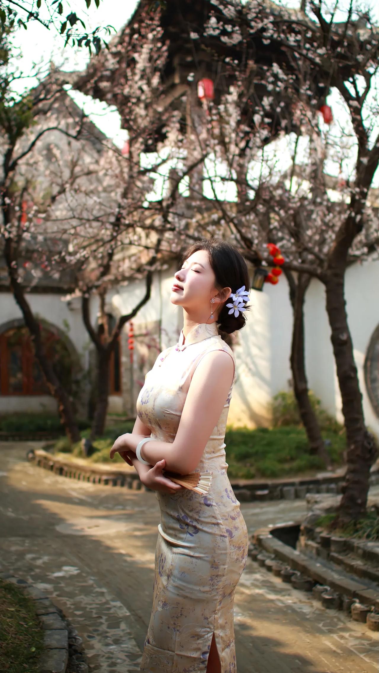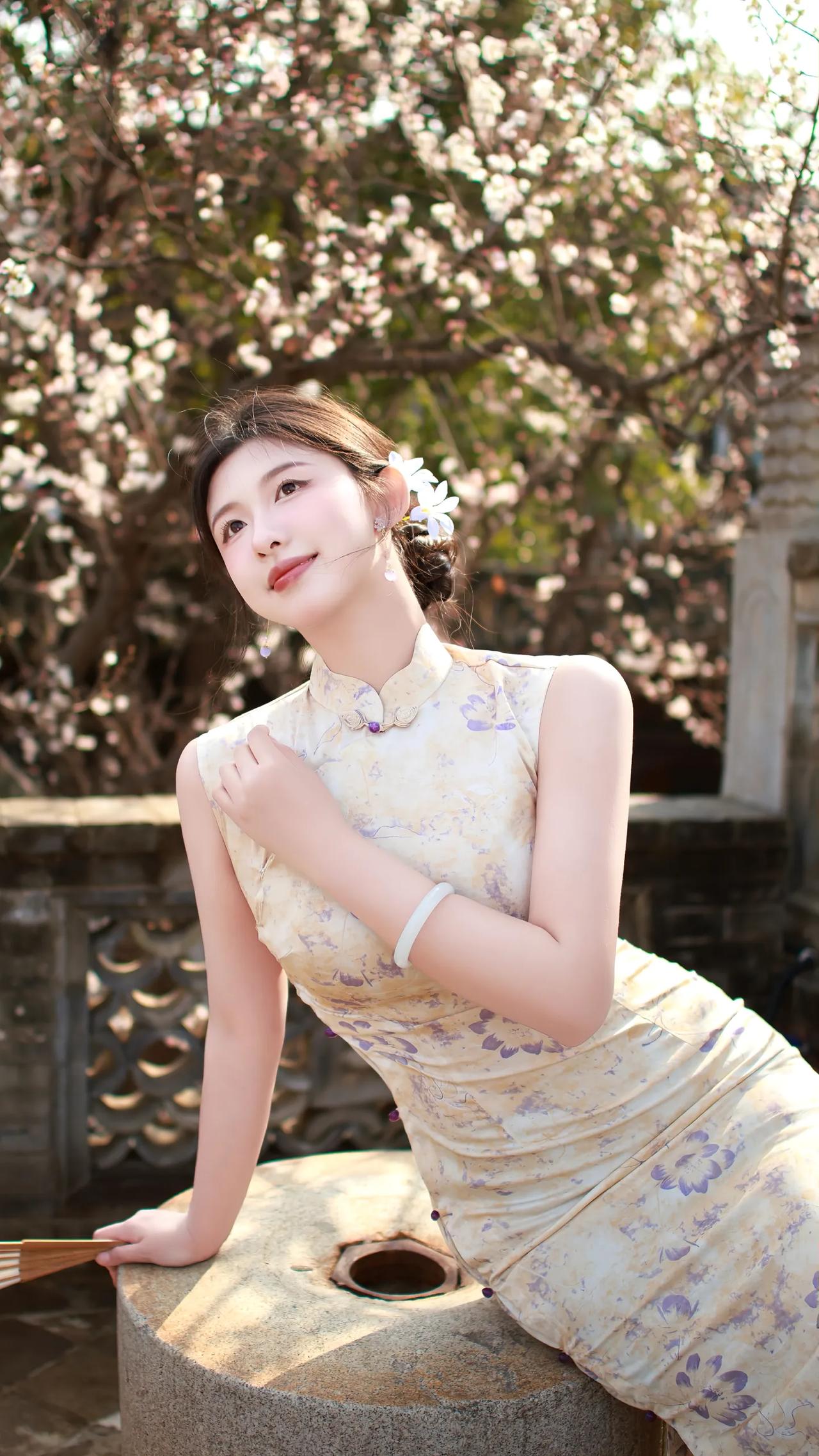 春日赏花,古风美人倚栏赏花,花枝招展,韵味十足。什么样的穿搭可以成为气质女神?