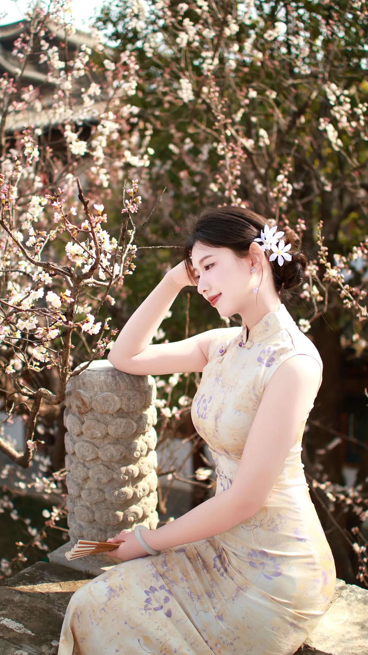 春日赏花,古风美人倚栏赏花,花枝招展,韵味十足。什么样的穿搭可以成为气质女神? 摄影