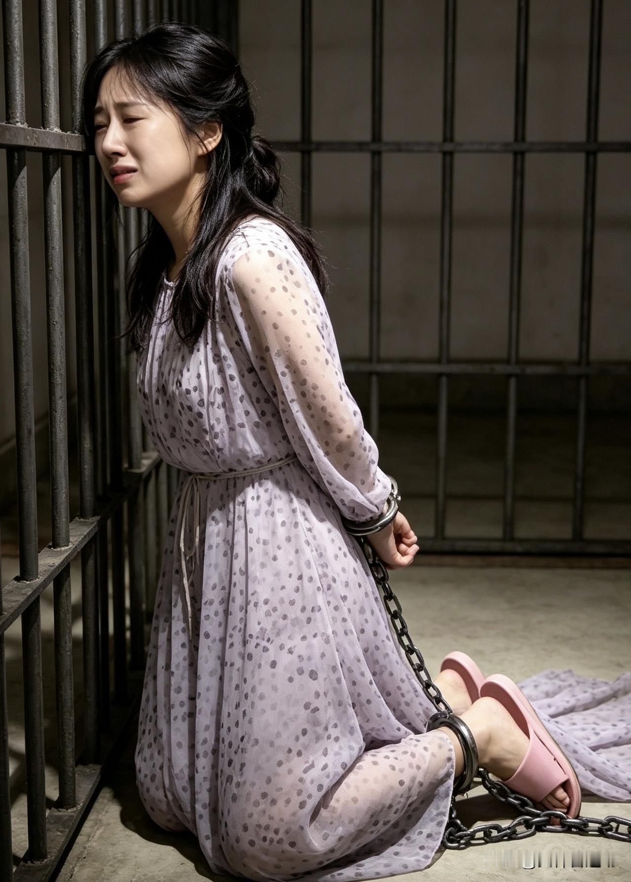 镣铐加身,美梦破碎。昔日红裙佳人,从此在高墙内耗尽余生。重刑女囚戴沉重脚镣有必要