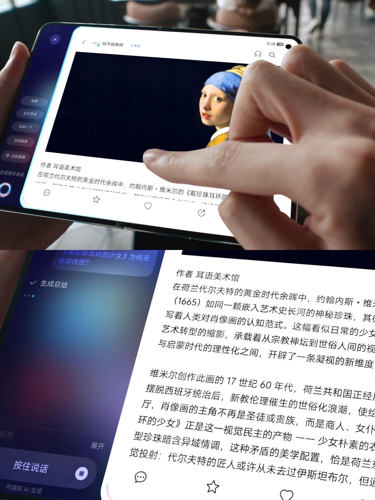背后有Agentic自演进架构强力支撑,能实现快慢思考融合、自主反思与进化,精准覆盖生活、工作、学习全维度高频场景。阅读时自动提炼核心重点,出行时主动推送路况和打车提醒,聊天时智能识别待办和票务信息,彻底解决信息碎片化、跨APP管理繁琐的烦恼。而且它的双面阔型屏内外体验一致,A4纸比例带来极致沉浸感,搭配贴心又智能的伴随式AI,日常用机的幸福感直接翻倍,这才是未来手机该有的样子!华为大阔折开启伴随式AI时代
