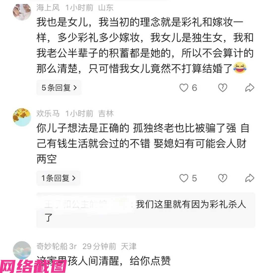 这里发帖是母亲,面对儿子成家要全部承担女方的一切费用,而女方似乎不需要付出什么,面对如此现实,母亲心里只剩下苦涩与冰凉,遇到这样的情况有人理解,有人认定各家有各家的遭遇,不一定所有女方都是如此,这里存在如今年轻人眼里,对于社会现实中的感叹与无可奈何。