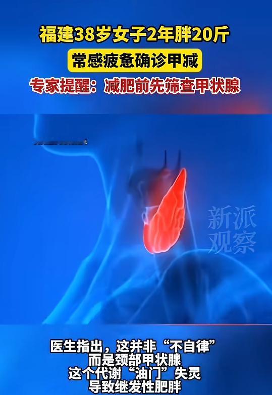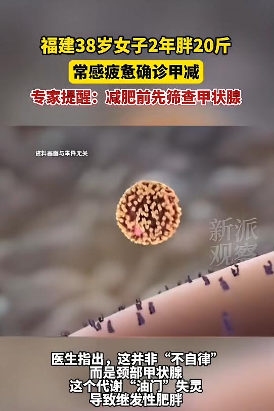 (信息来源:新派观察《女子2年胖20斤常感疲累确诊甲减》)