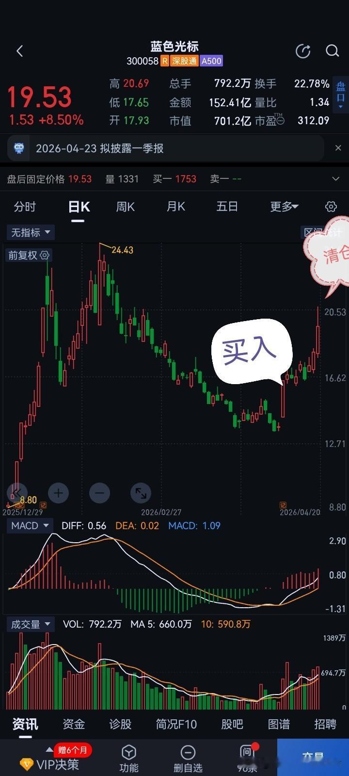 20日操作分享:蓝色光标,上周买入加仓,一直格局,今天上午拉升清仓了! 选股思路