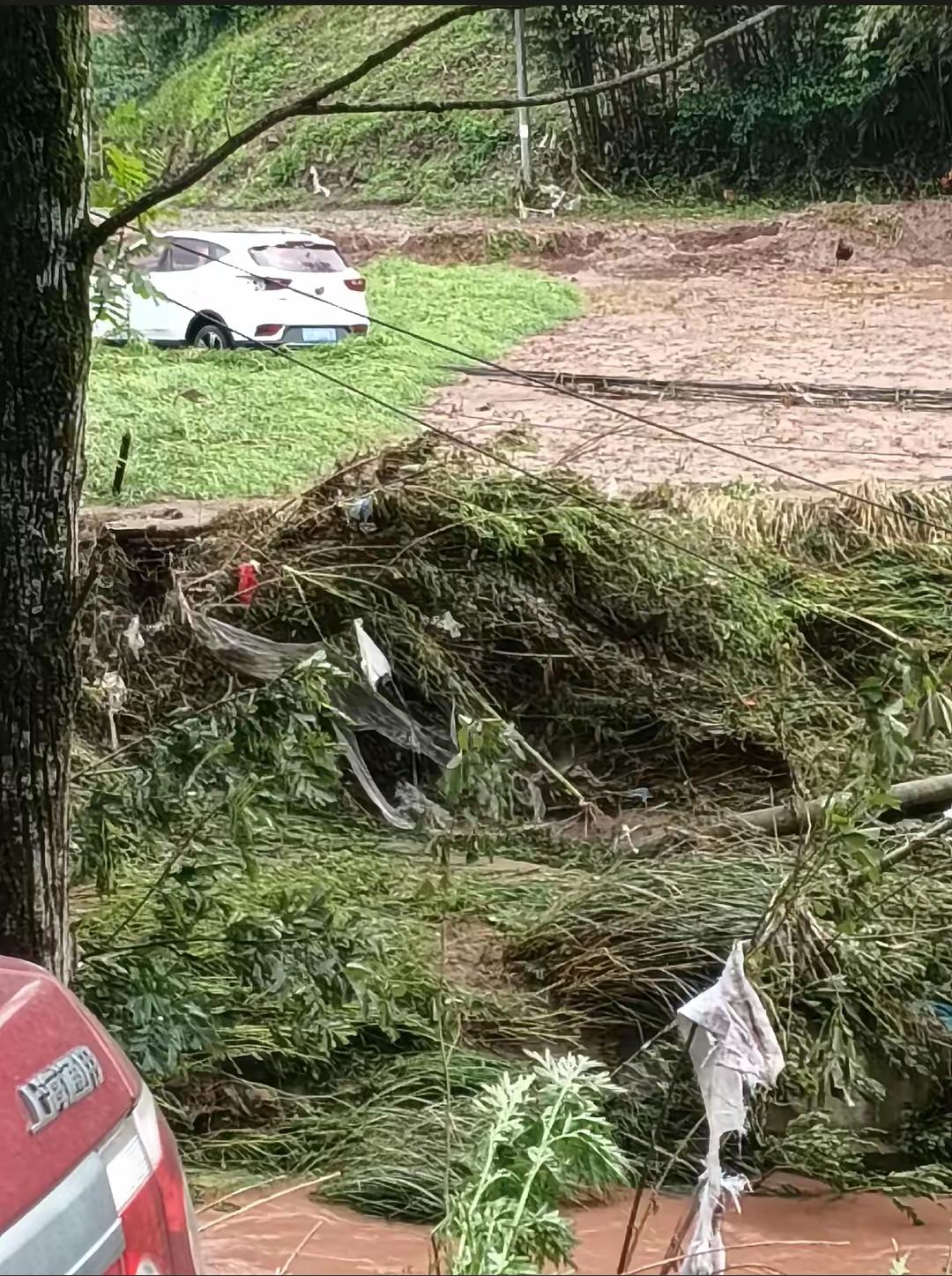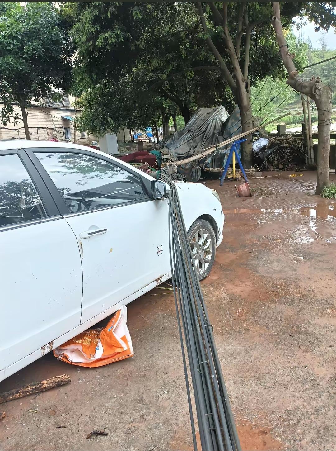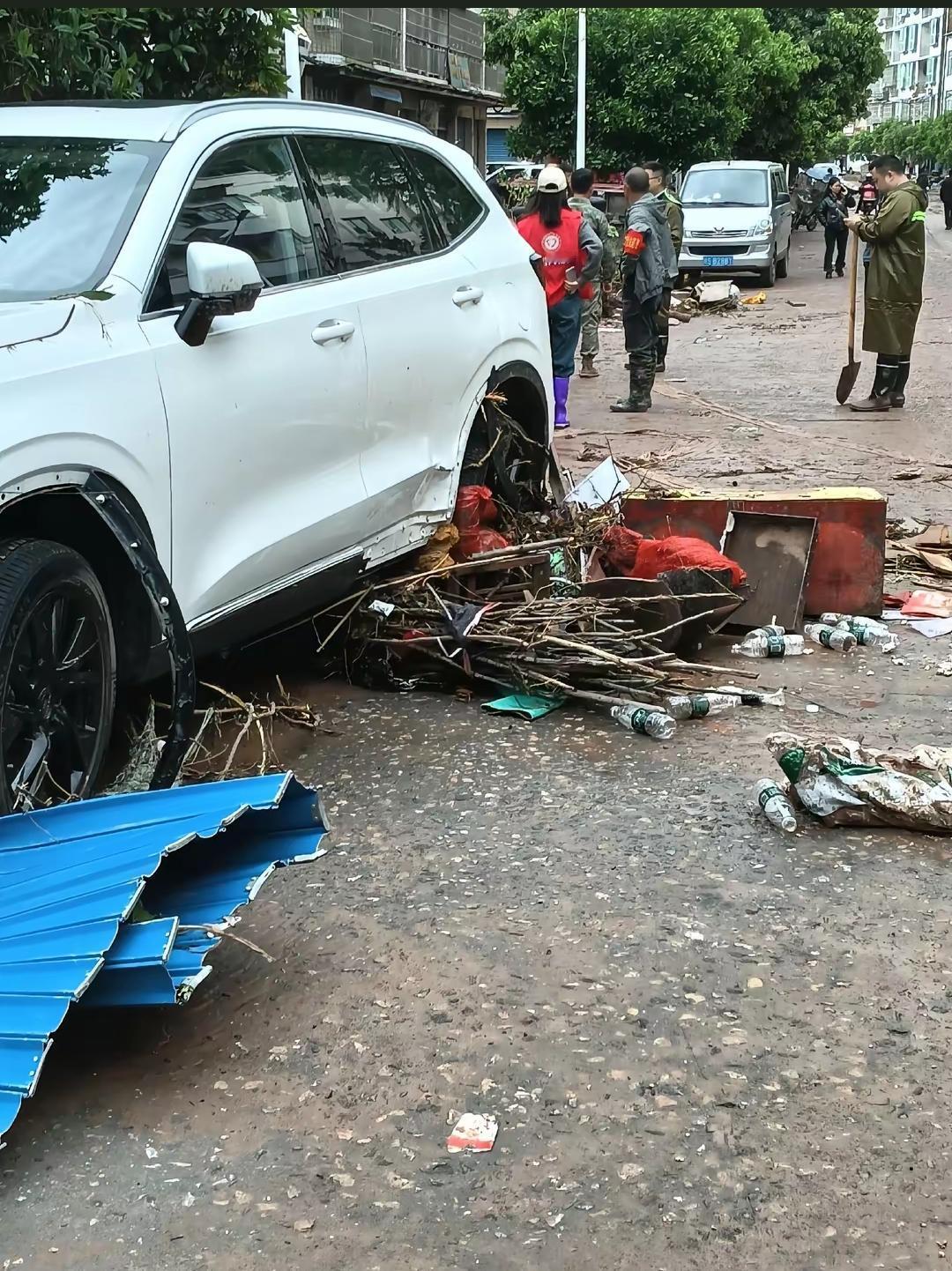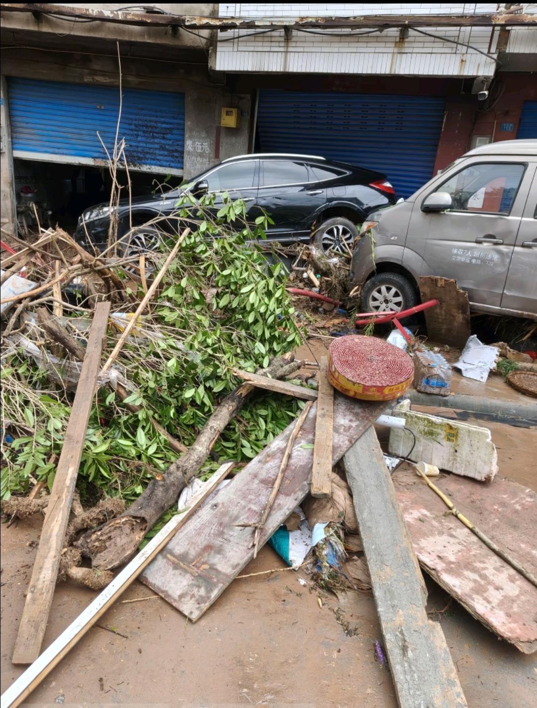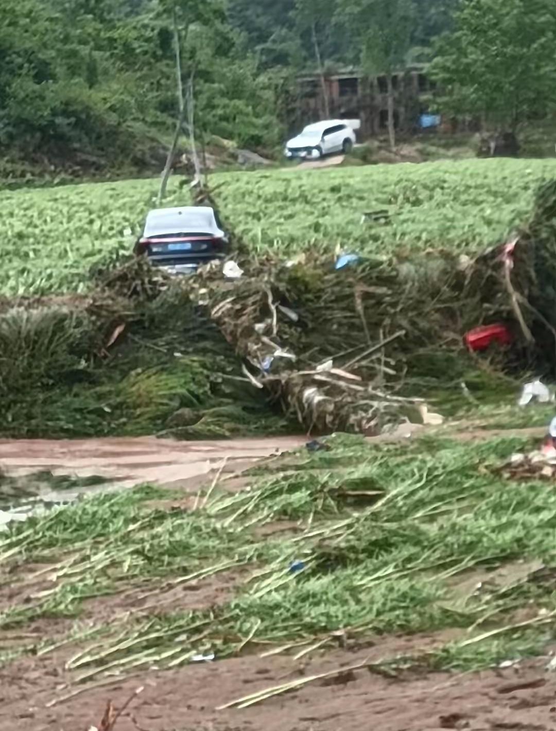 当地老乡拍摄到的画面,受损的情况还是比较大的,由于洪水来得比较湍急,在街道上的车辆都没来得及转移,不少车辆都受损了。