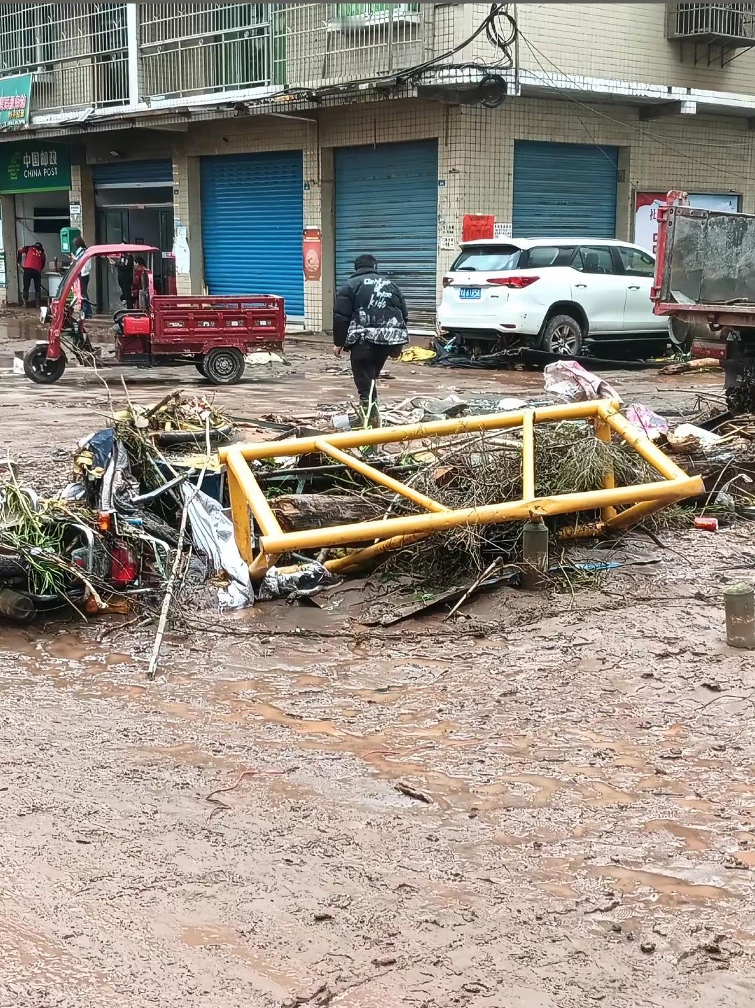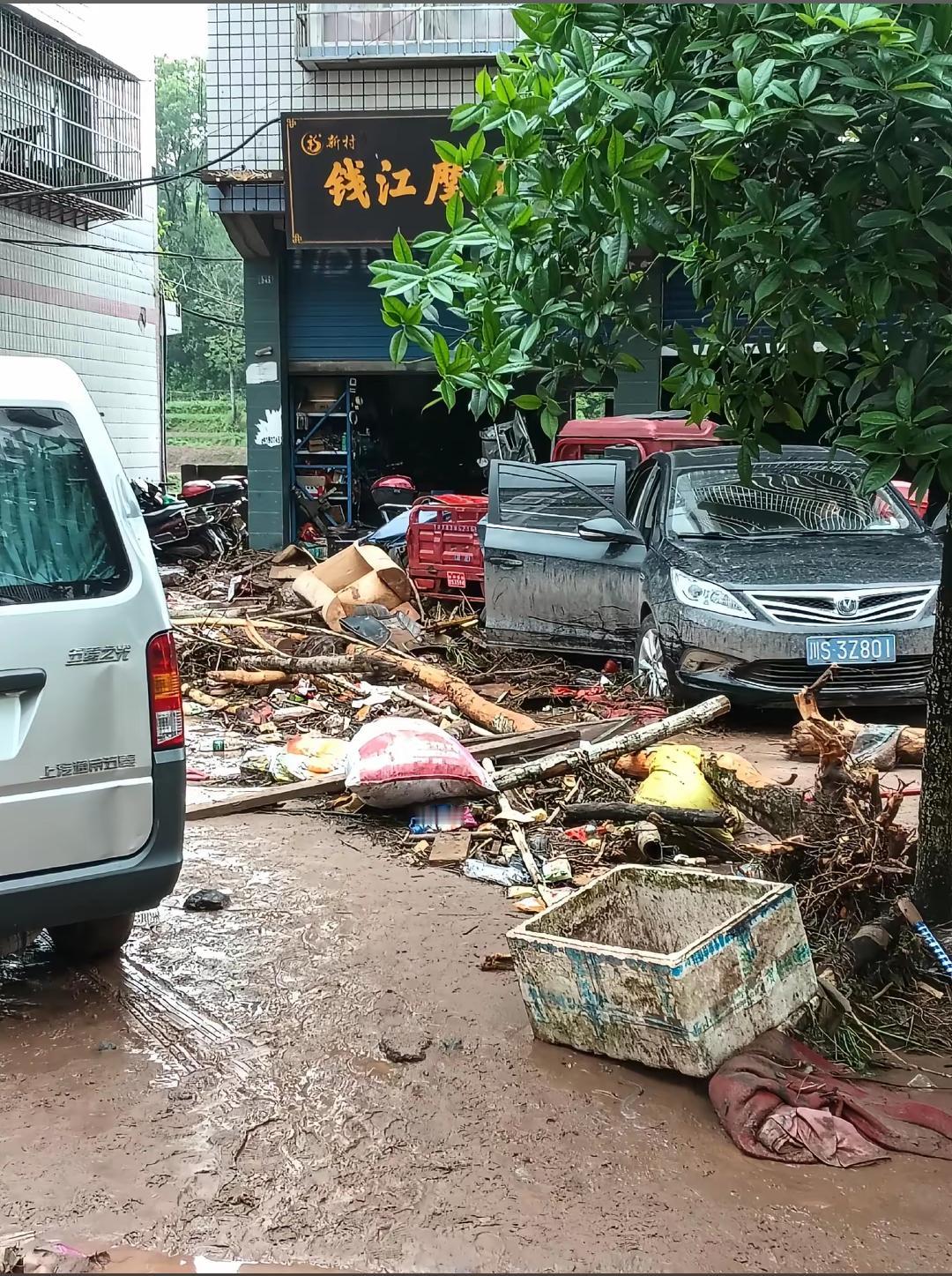 四川省达州市双龙镇新村街上遭受到了洪水的侵袭!双龙镇洪灾