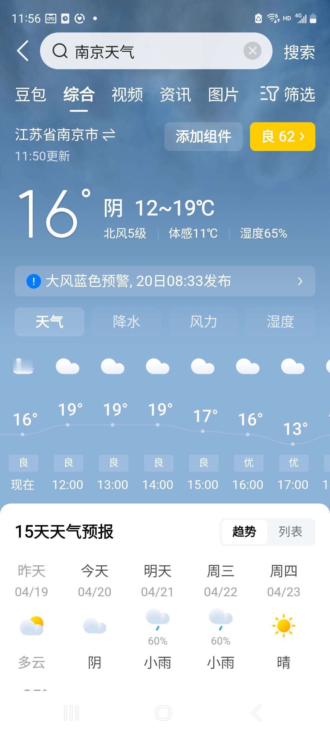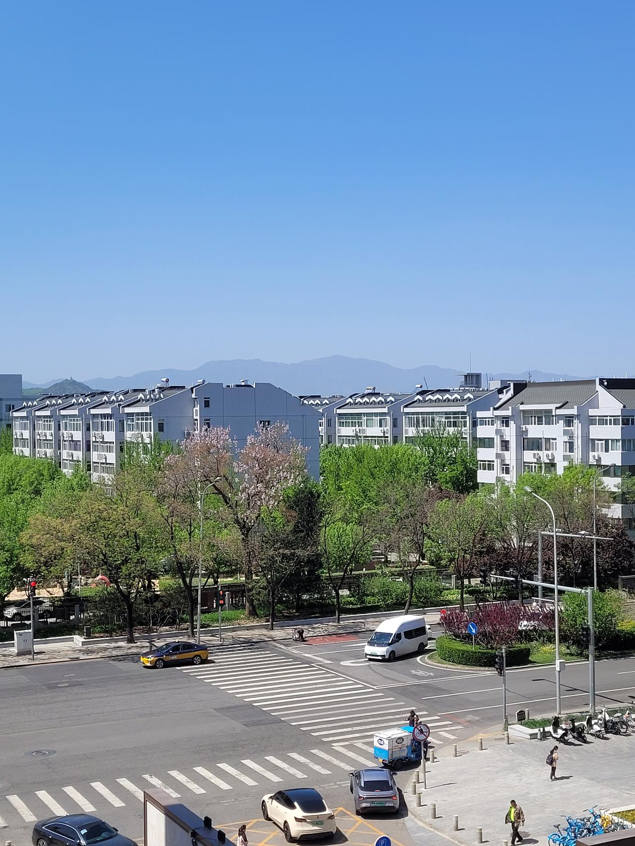 虽然有些蓝天,但蒙上了一层灰,四周天边更灰,不远的景物显得比较模糊。当然,这已经比三级空气质量好多了。