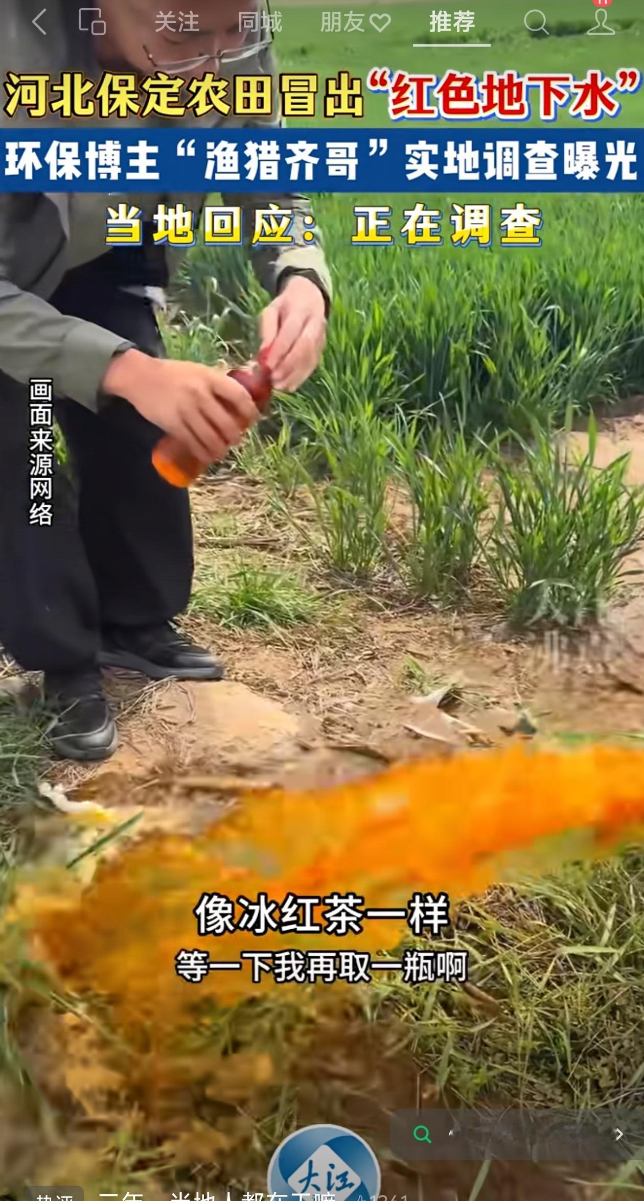 河北保定蠡县,村民浇地的地下水,竟然是深红色的。