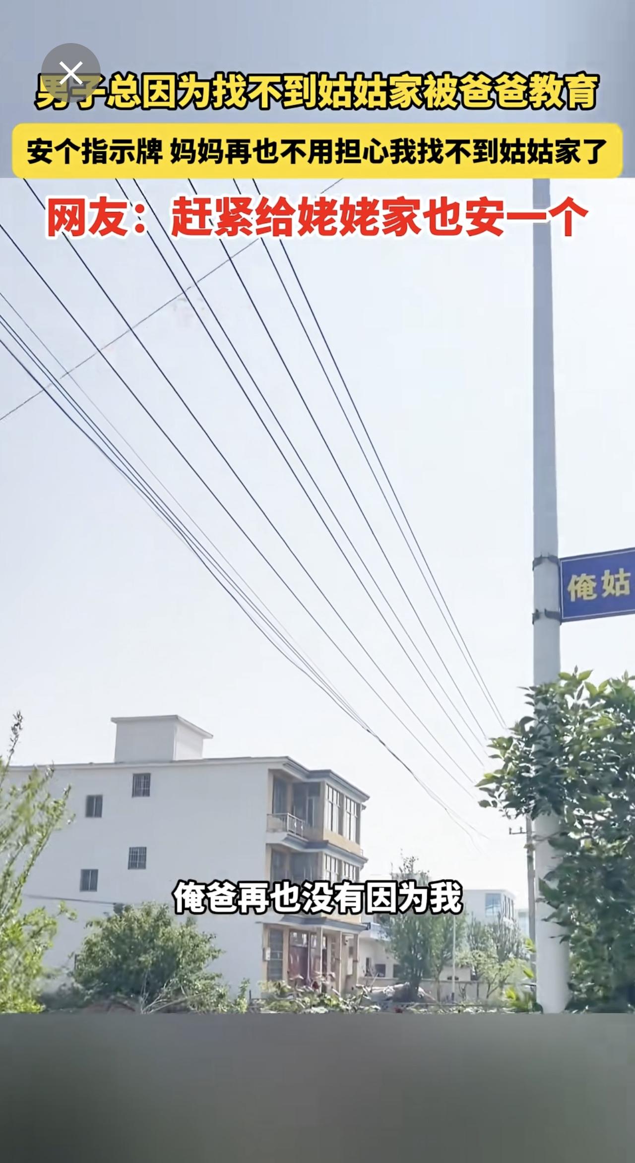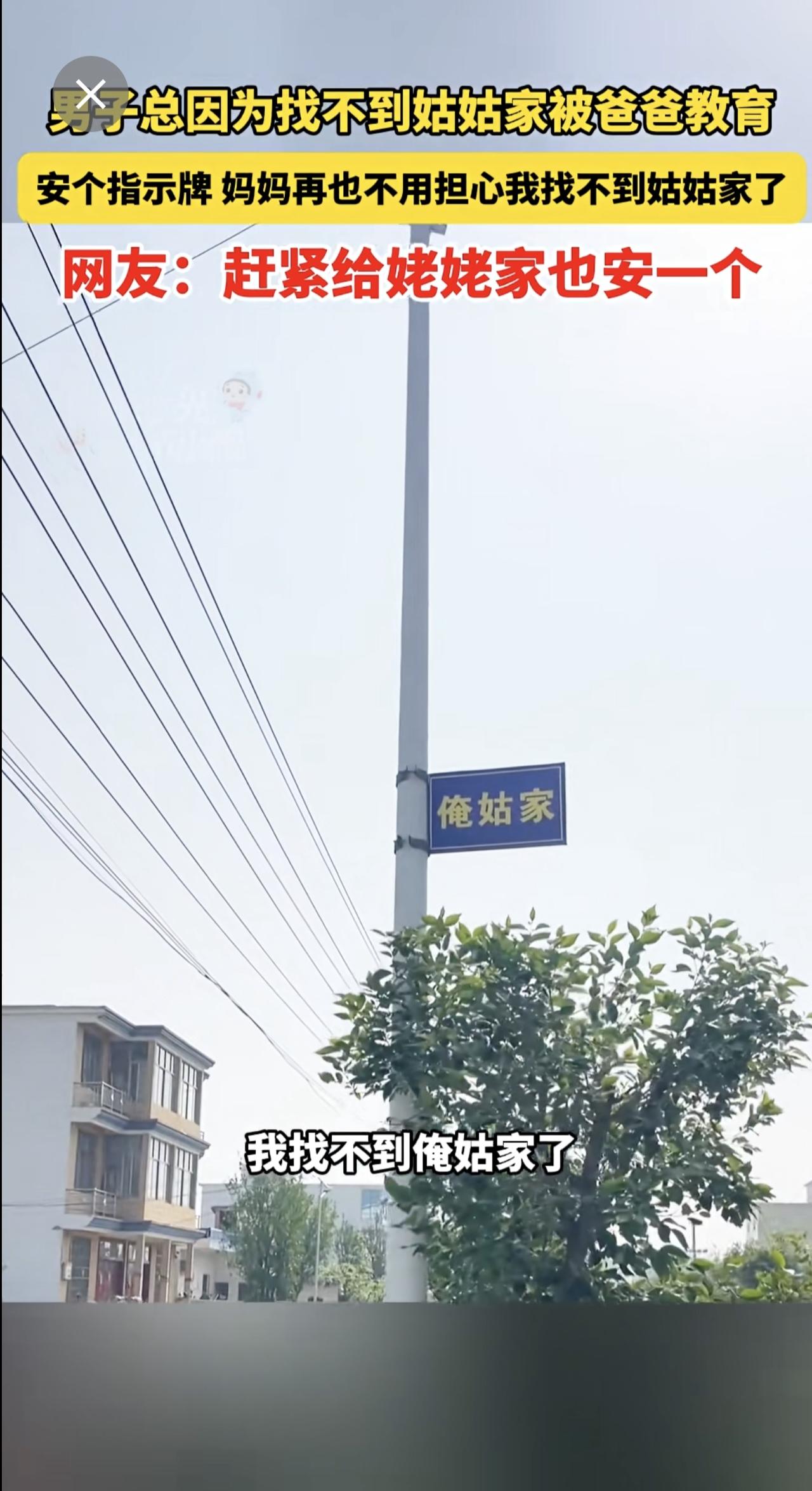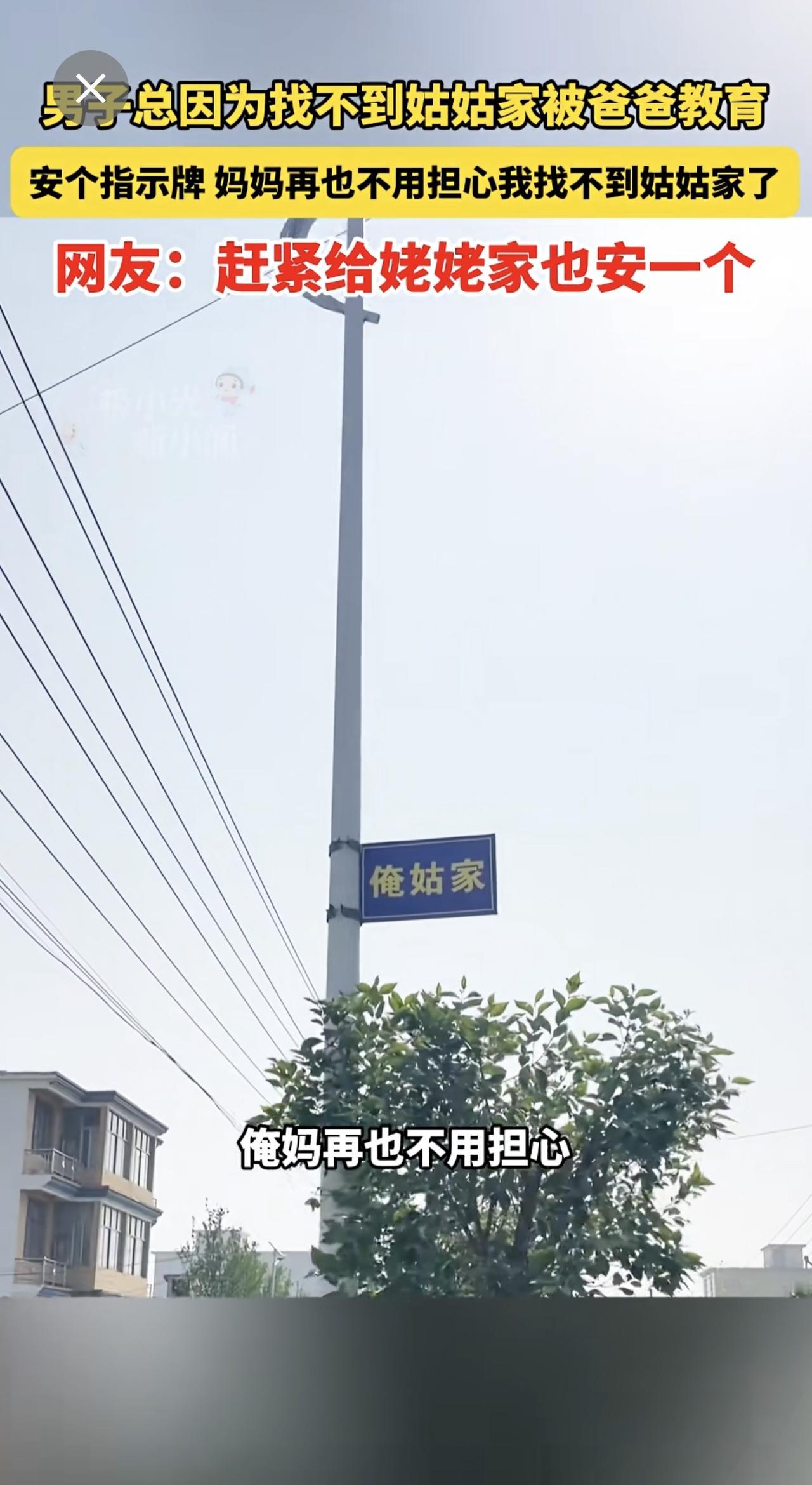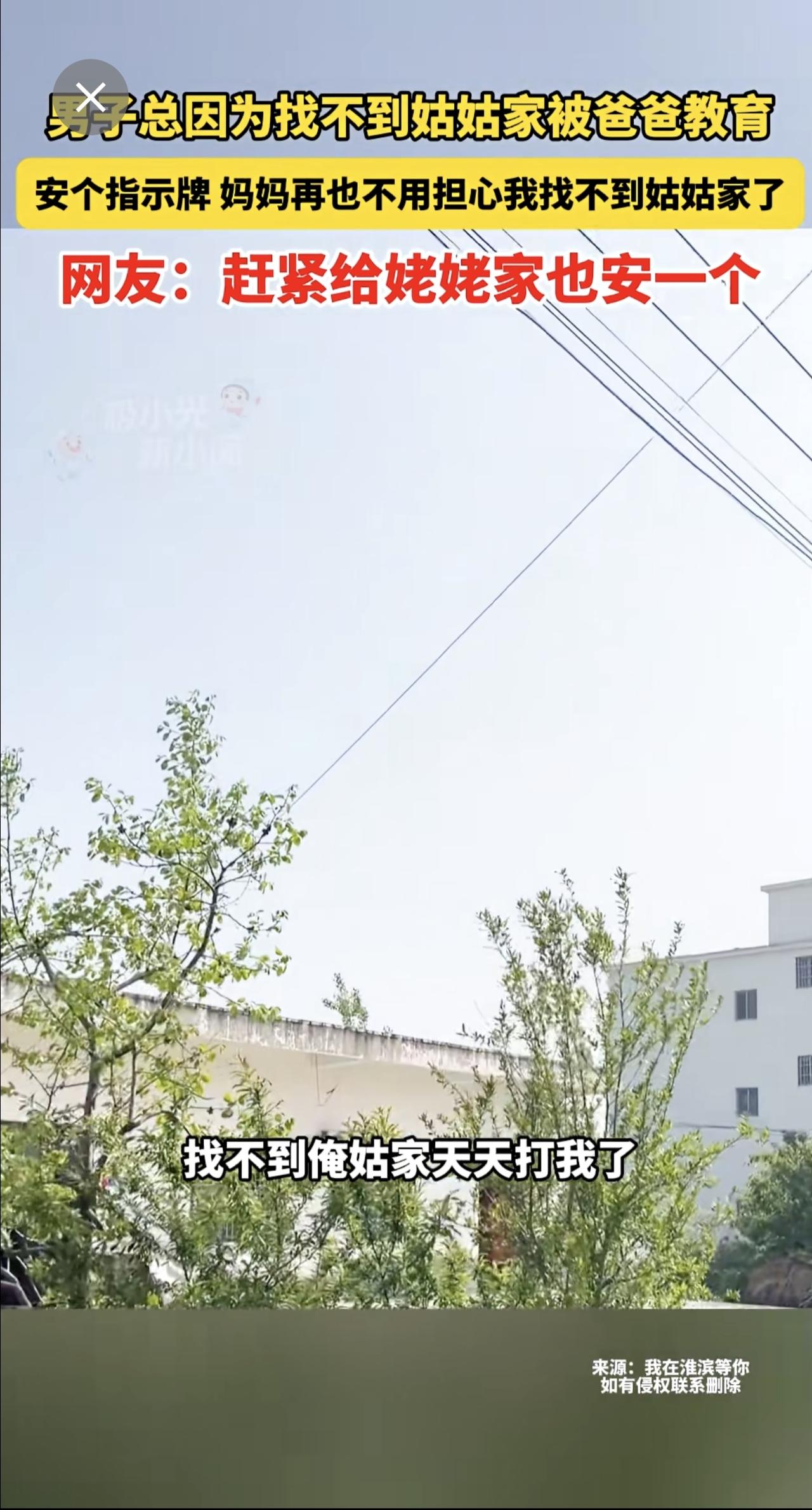 4月18日河南,男子总因为找不到姑姑家被爸爸教育,安个指示牌,妈妈再也不用担心我找不到姑姑家了,网友:赶紧给姥姥家也安一个