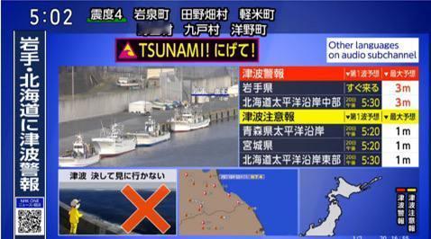 今天下午4点52分左右,日本岩手县近海发生7.4级强震,震源深度仅10公里。日本气象厅紧急发布海啸警报(红色级别),预测最高海啸可达3米。最危险区域:岩手县、北海道太平洋沿岸南部。