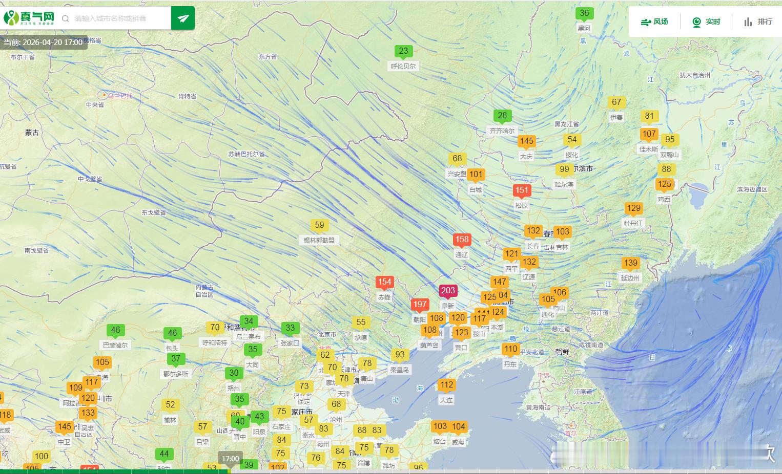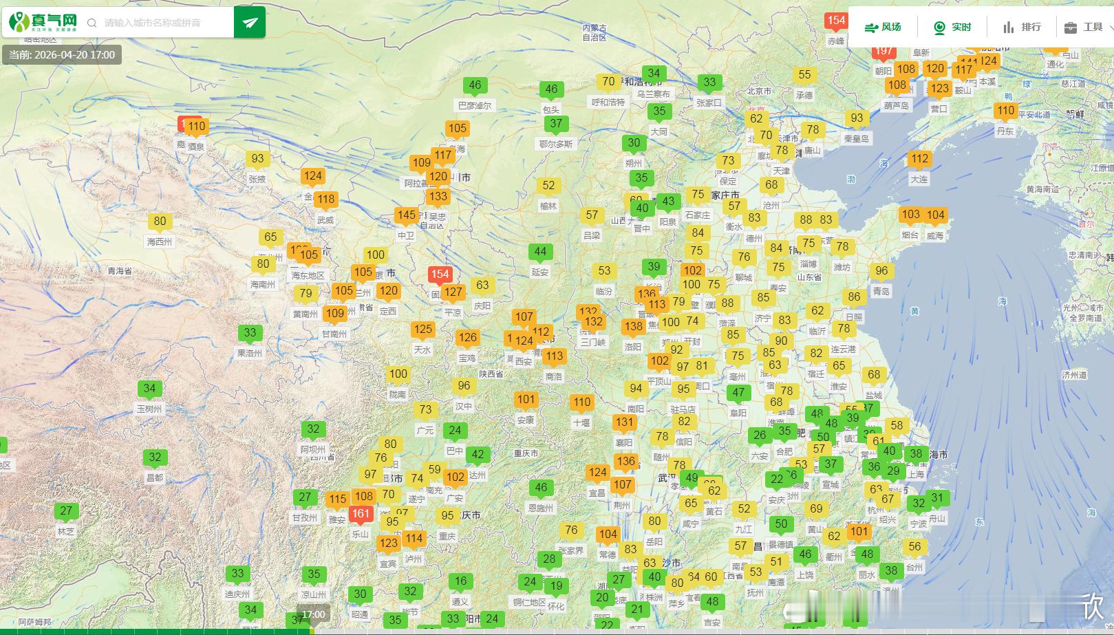 【风沙和大雾】今天17时,新疆和田继续沙尘爆表。此外,今天因为风大,东北等地今天下午又新出现了一些沙尘,辽宁阜新有重污染。另外之前还有些存留的沙尘,宁夏固原、四川乐山有中度污染。今晚到明天,内蒙古中东部、吉林、黑龙江南部等地还有5-7级风,阵风8-10级,不排除局地还有些起沙。而新疆塔里木盆地的沙尘会持续。此外,今夜到明晨,南方多雨,但不排除在降雨的间歇,有些零散的大雾。