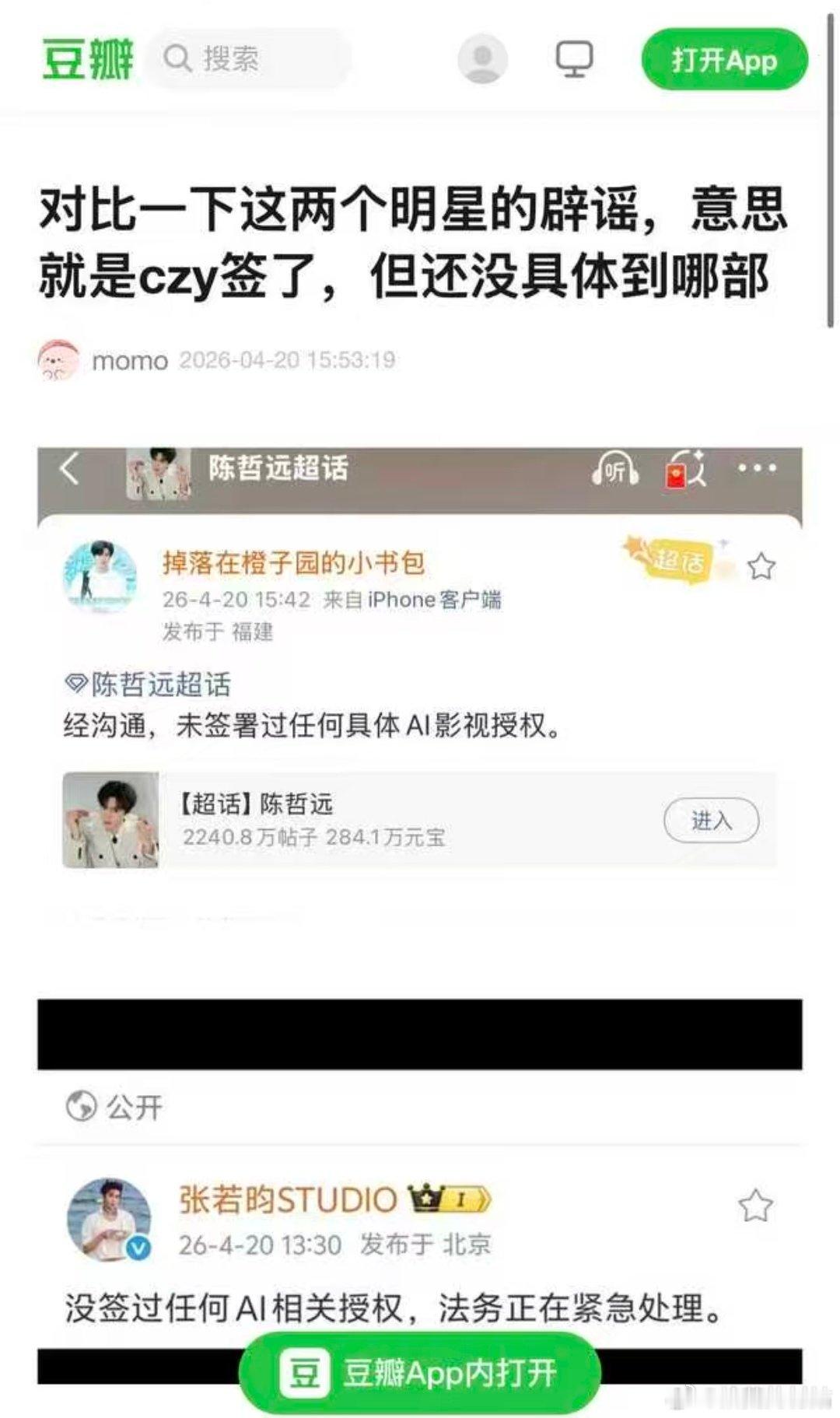 未授权AI艺人 陈哲远这个辟谣像文字游戏,其实还是签了入库了,但还没授权具体的影视项目,不矛盾。对比张若昀这个才是真的辟谣。陈哲远对接否认签署AI授权