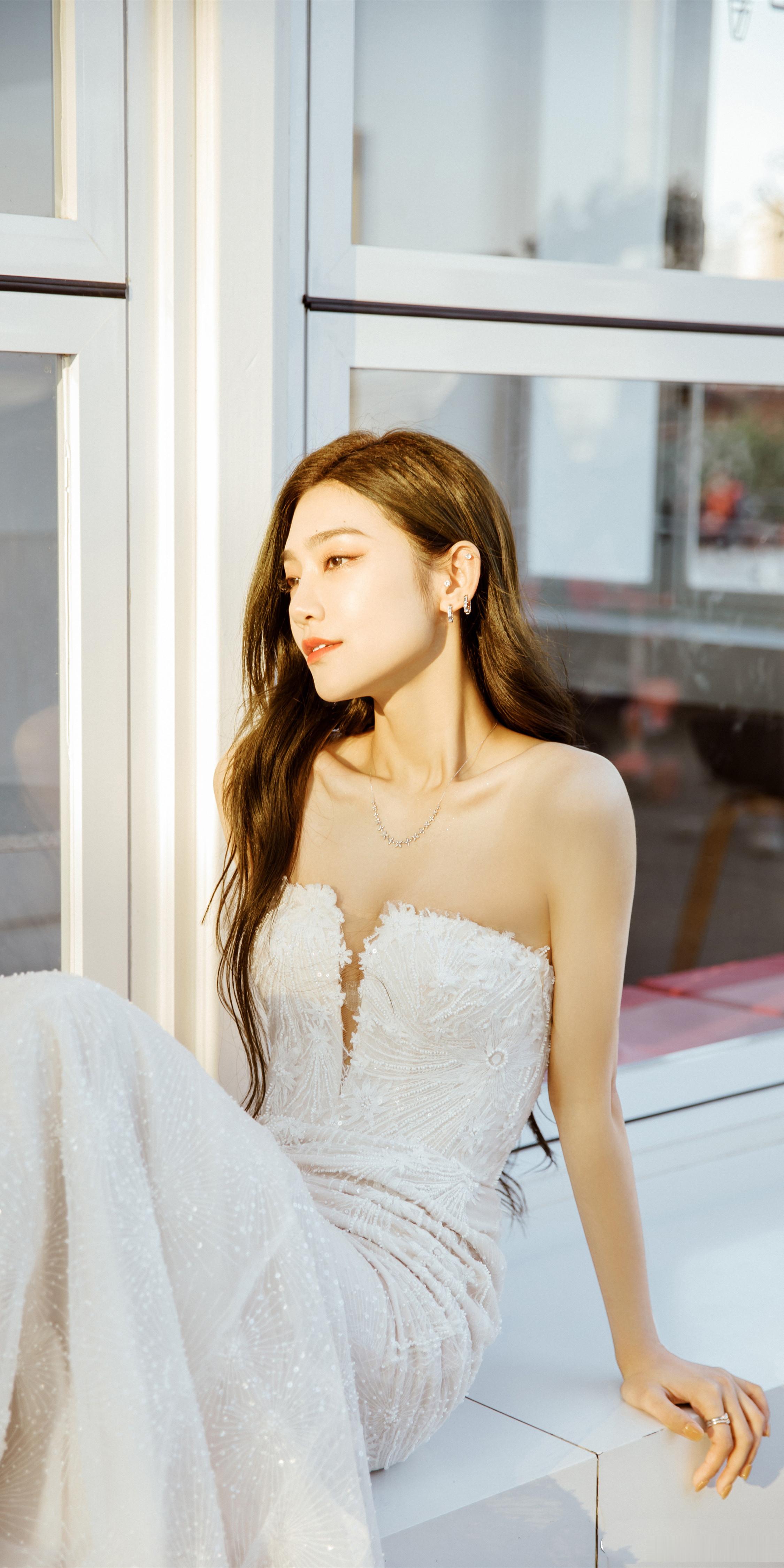 曾可妮壁纸精选:一袭白裙,浪漫甜美。曾可妮超话]