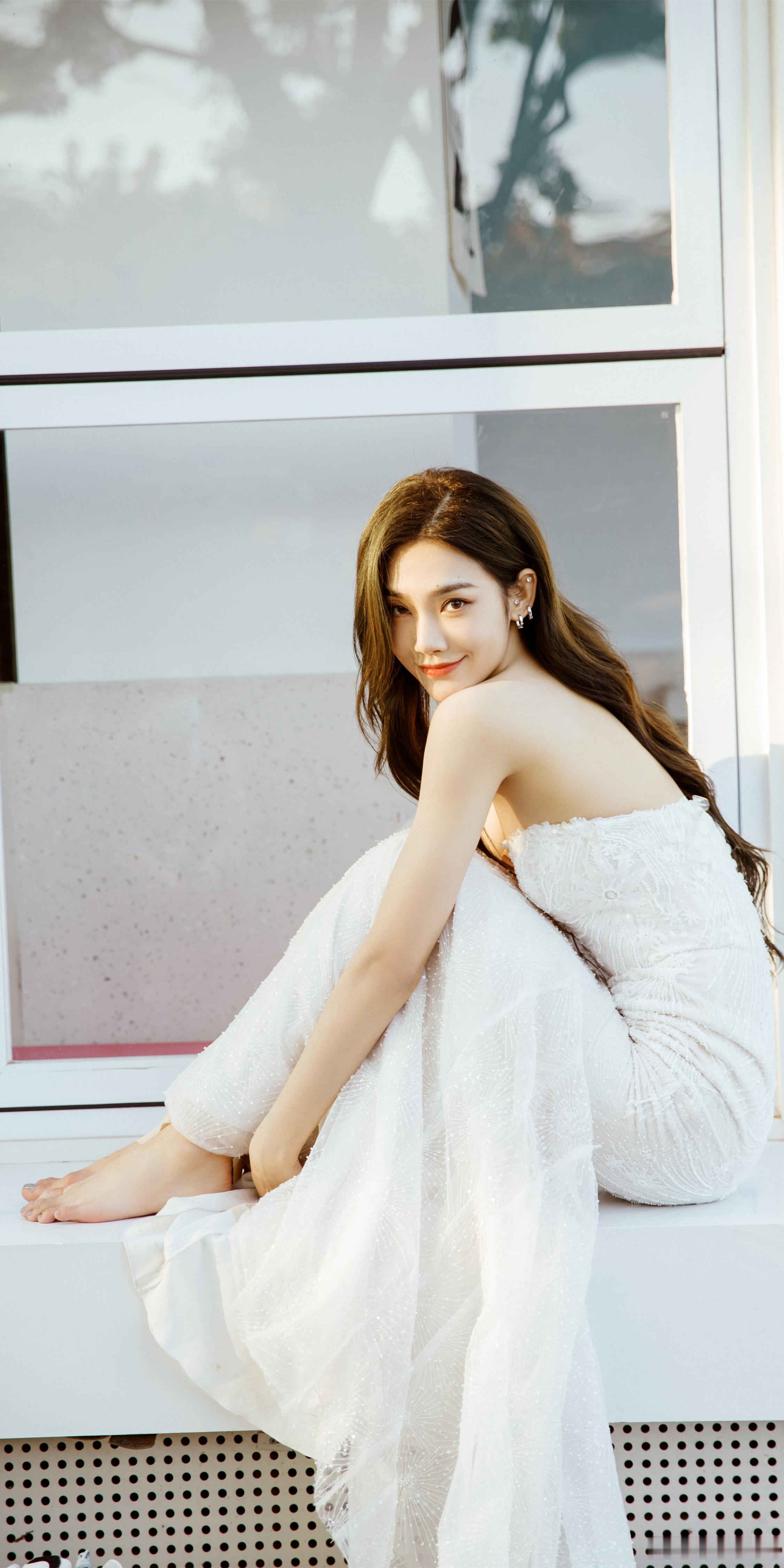 徐璐壁纸:甜美清丽的光脚丫少女。徐璐