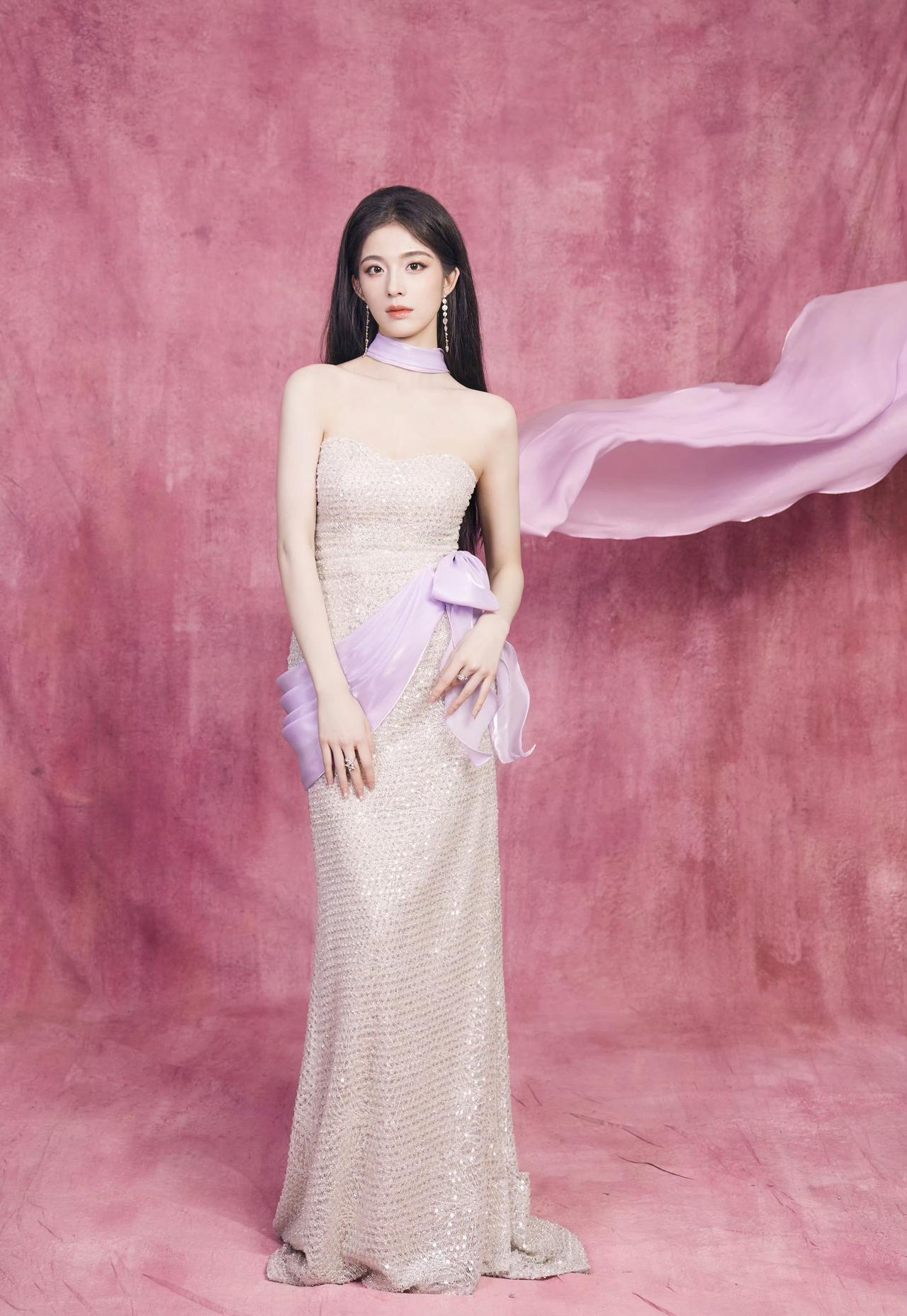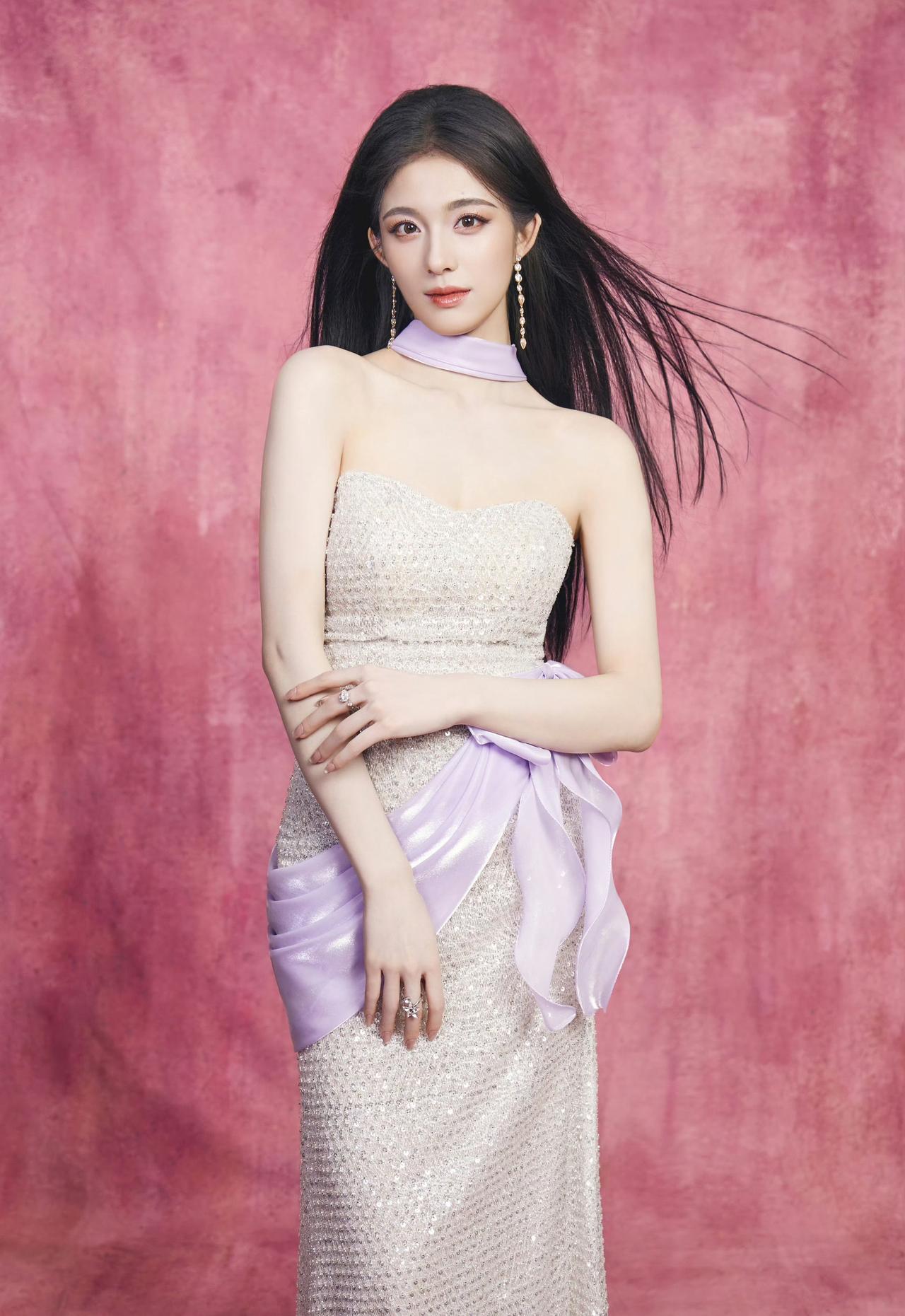 徐若晗,白色抹胸裙美腿,清澈优雅。徐若晗