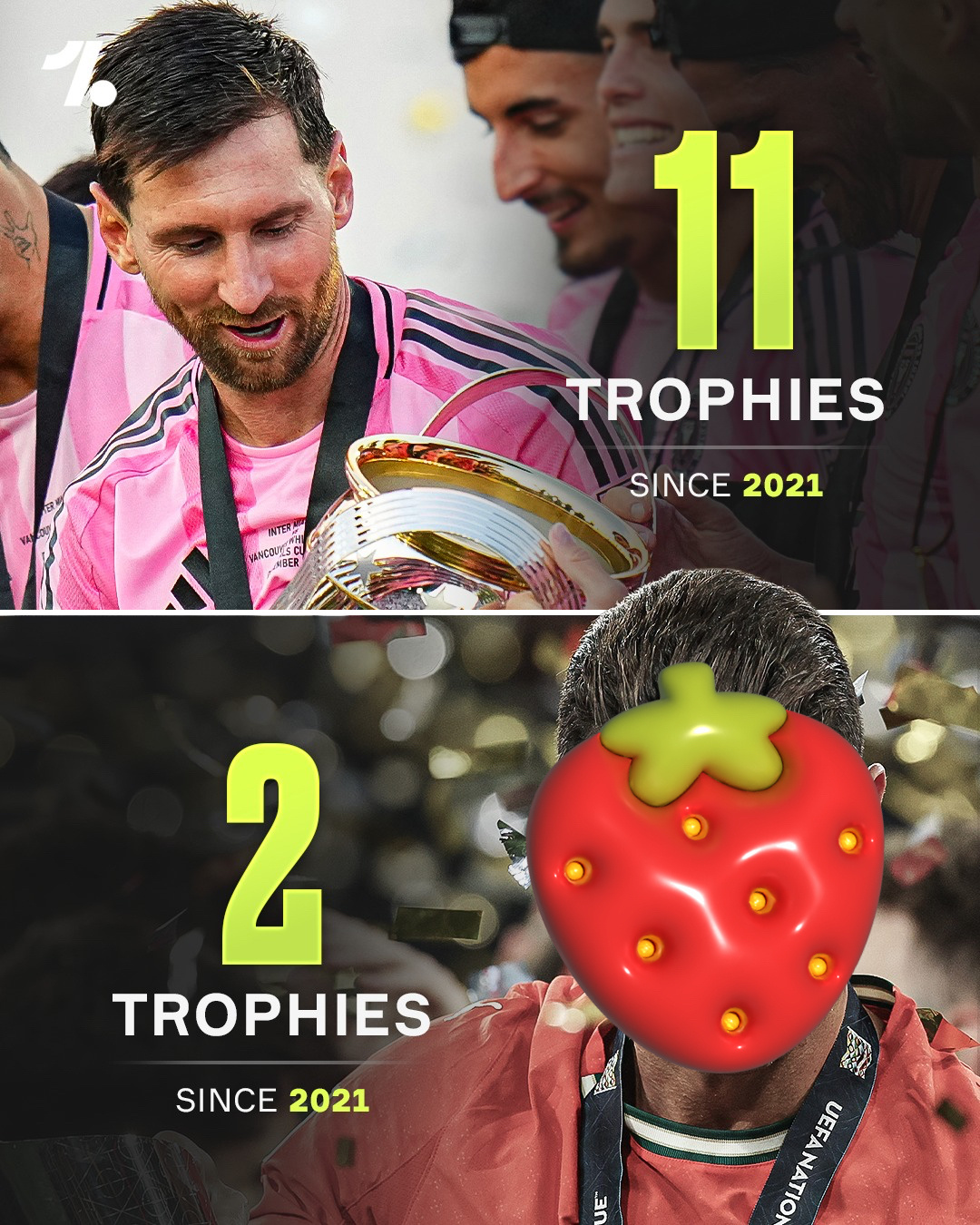 快进到2026年,情况看起来非常不同,梅西继续以惊人的速度获得奖杯,而C罗的奖杯数量自从他回到曼联,然后又来到利雅得胜利后不断放缓😬📉🏆