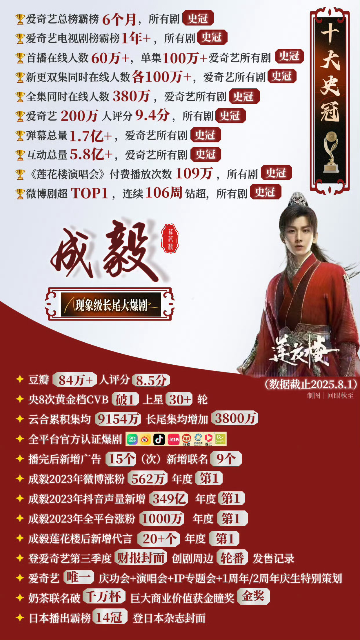 爱奇艺top10剧集没有莲花楼莲花楼早已自成IP,不靠任何额外加持,仅凭自身口碑和影响力,跻身爱奇艺百亿IP矩阵,成毅不仅能扛剧,更能造IP,实力和商业价值双在线,真正的好演员,本身就是最值钱的IP。