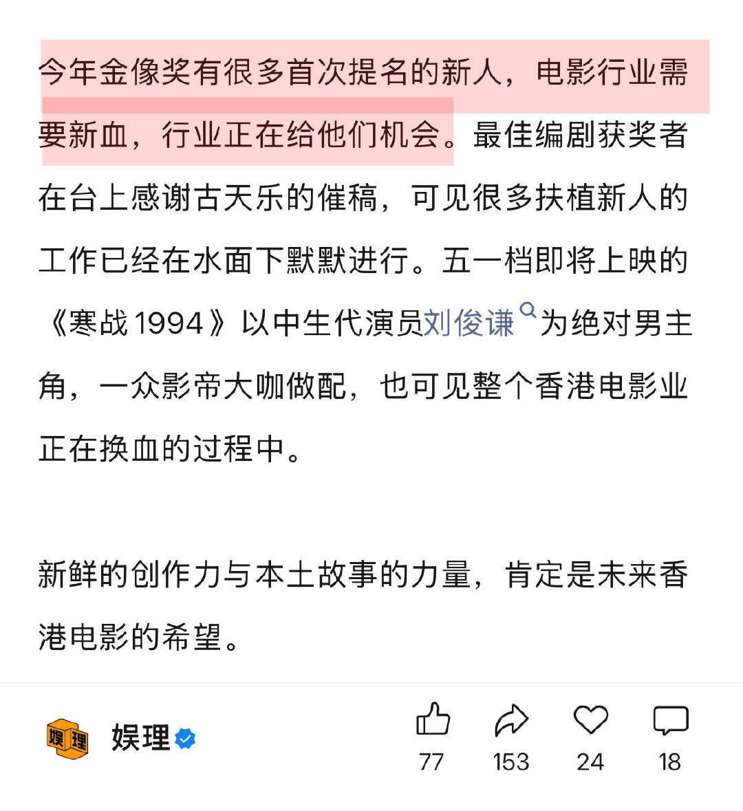 金像奖真的是在爆冷吗 如何看待章子怡马丽没得金像影后 处于低谷期的香港电影,目前看来是三条腿走路的模式:近几年异军突起的黄子华,连续推出爆款救市;古天乐以演员和幕后老板身份撑起香港电影半边天,依旧高产;香港本土IP的延续,无论是《寻秦记》打出的情怀牌,还是《寒战》系列的重启,都说明香港影视过去几十年的积累仍然有效…