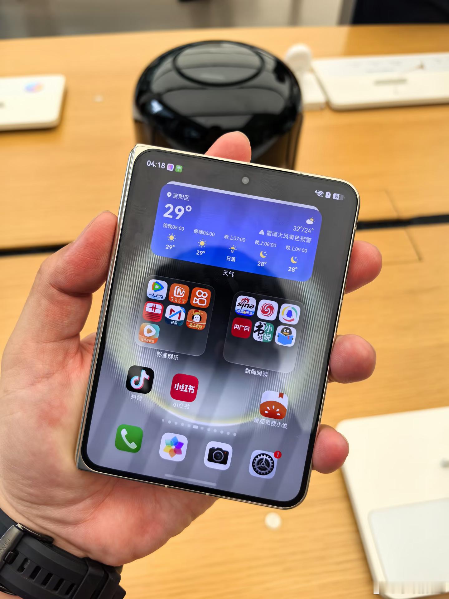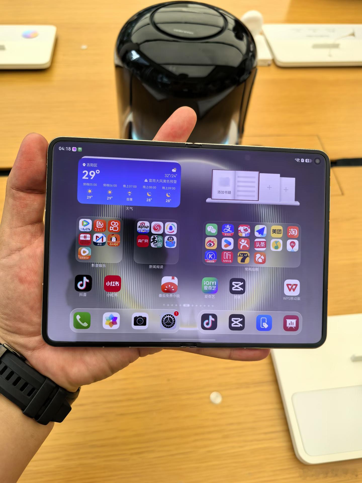 今天这 Pura X Max 直接换了个赛道,横向折叠,7.7英寸大屏展开接近小平板,外屏5.4英寸单手握持无压力,明显是冲着商务办公+大屏影音去的。