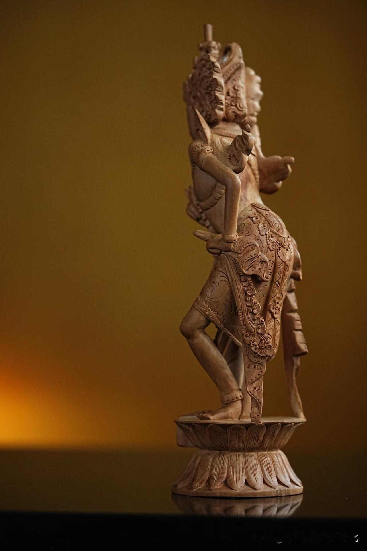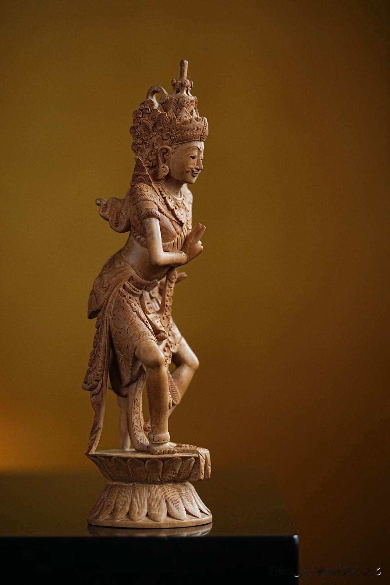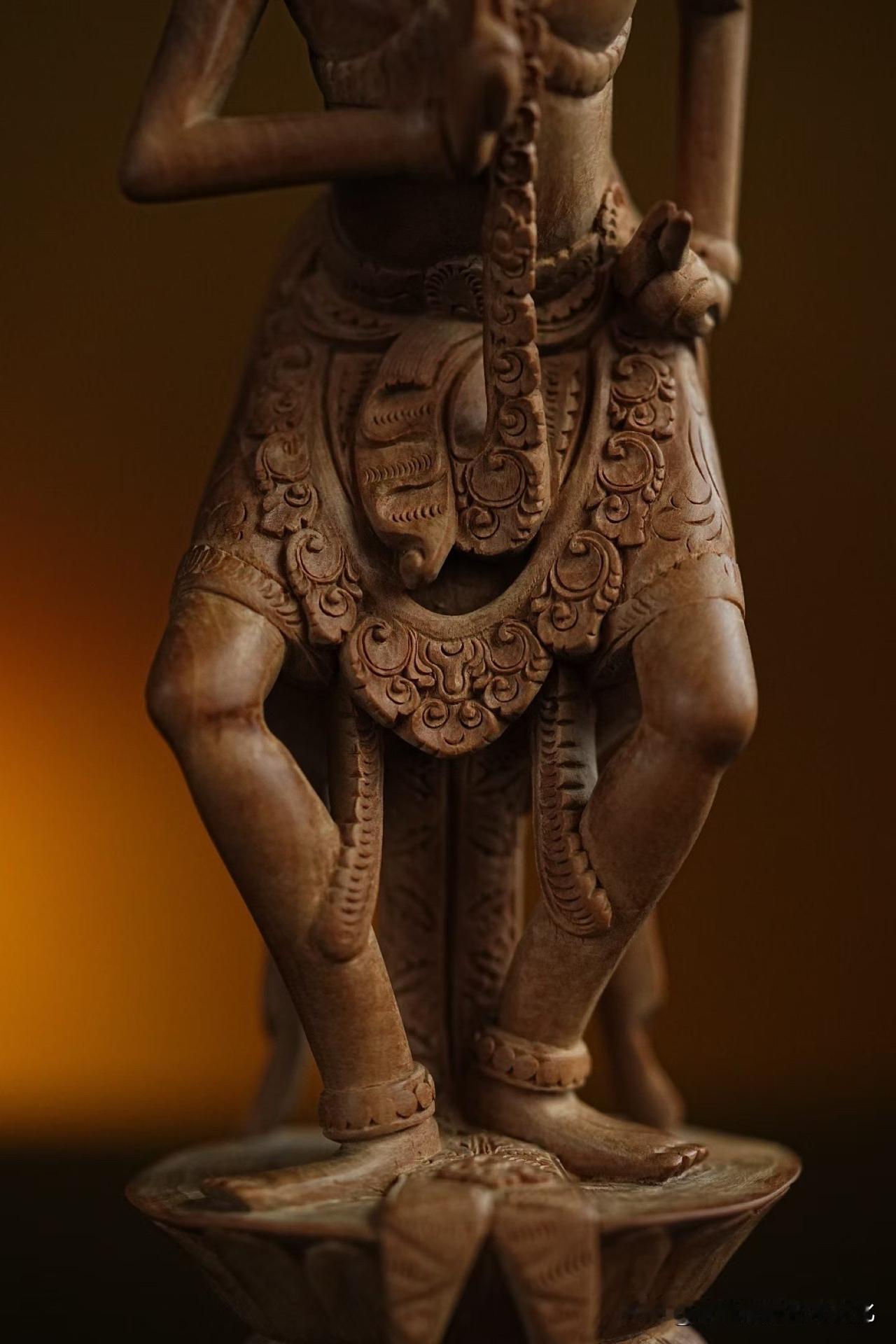这尊亥母,一足踏莲,身姿前倾,仿佛下一瞬就要起舞。线条不拘中轴,却始终有一种内在的平衡——动中有定,定中有力。