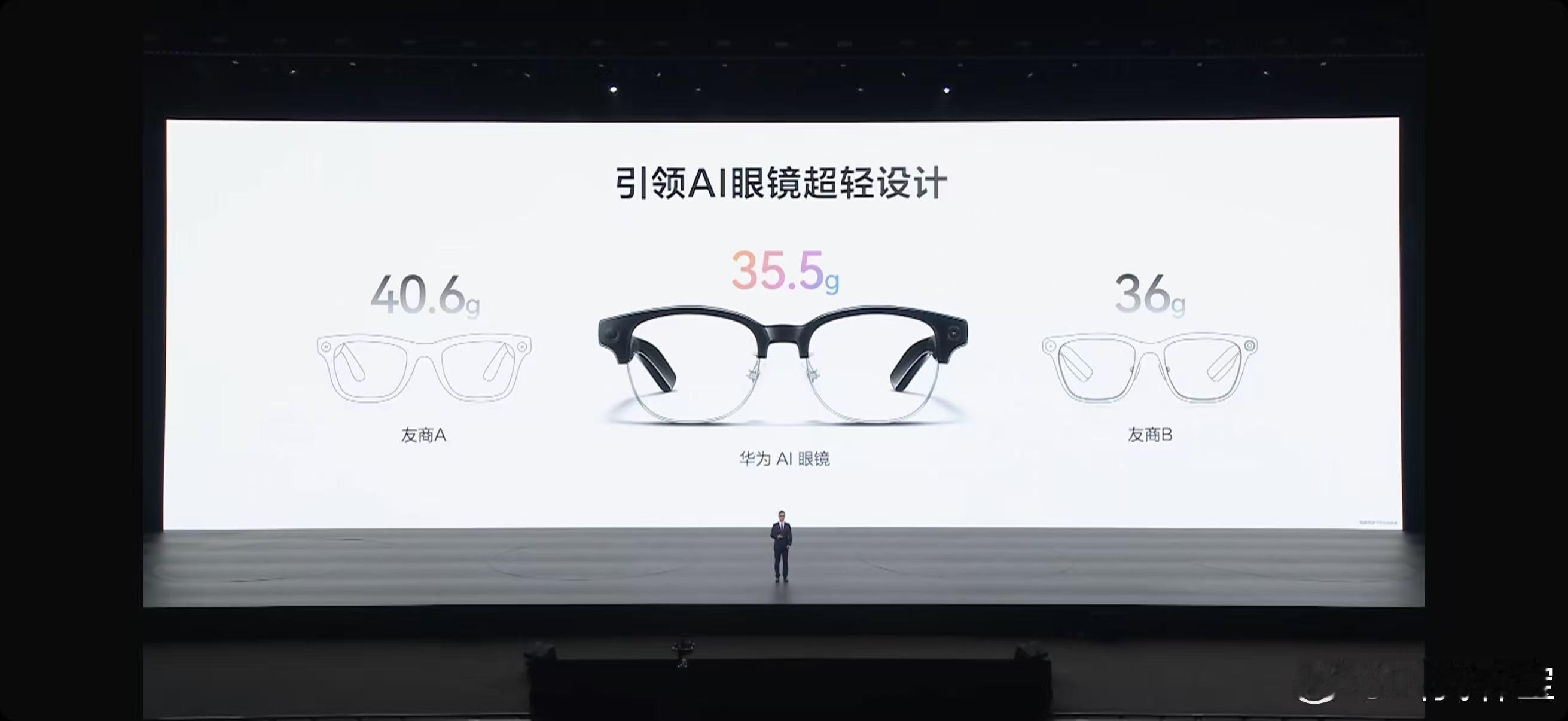 华为发布业界最轻AI眼镜有了华为 AI 眼镜,在生活真的很方便。周末逛超市,拿起一盒不认识的进口零食,手指轻轻一指,华为 AI 眼镜里的小艺就能告诉你它的主要成分和热量。告别掏出手机的步骤,只需要看一眼收银台的付款码,支付就完成了。 作为华为首款支持实时视觉交互的AI眼镜,它整机只有35.5克,是目前业界最轻的AI眼镜。镜腿纤细贴合,鼻托柔软不压痕,戴一整天几乎无感。通勤路上、运动健身、居家办公,它都稳稳挂在脸上,不会滑落。 轻巧到忘记存在,智能到随手即用。无论是看到想了解的物品,还是需要即时查询的信息,只要视线所指、语音一问,答案就会出现在眼前。华为 AI 眼镜,让AI真正走进了你的日常视野。
