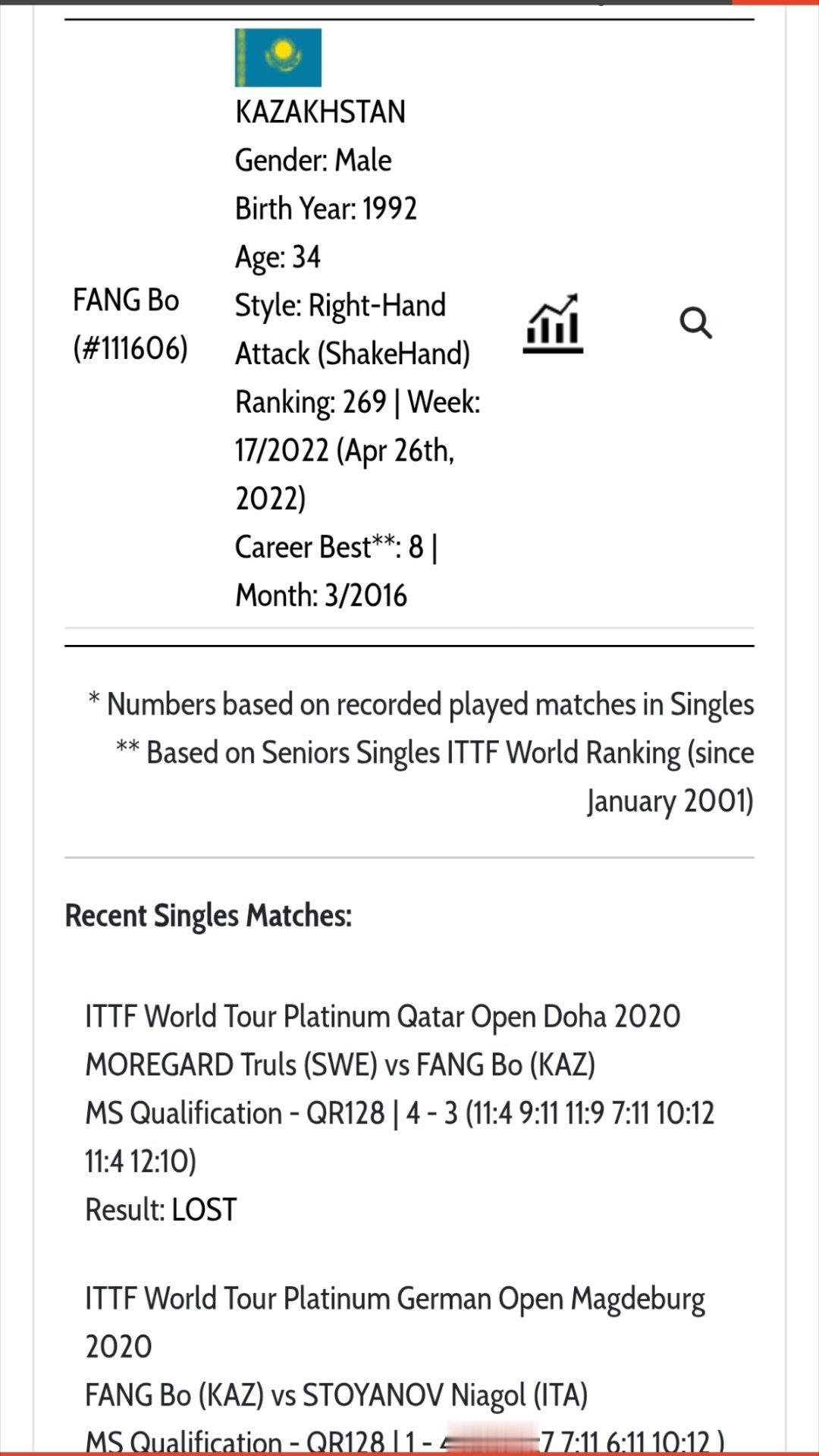 方博回应代表哈萨克斯坦参赛¹ 吓一跳!他只是代表哈萨克斯坦🇰🇿打比赛,没有更改国籍,仍是中国籍。² 过去就觉得这哥们敢说话,心存不甘,真的热爱乒乓球。³ 他的退役是被动的,终于找到一条出路了。热点科普