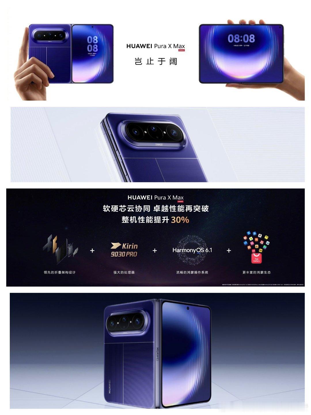 华为Pura X Max价格公布,行业首款大尺寸阔折叠屏手机,售价10999元至