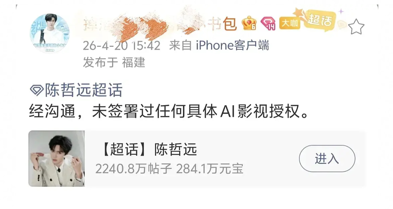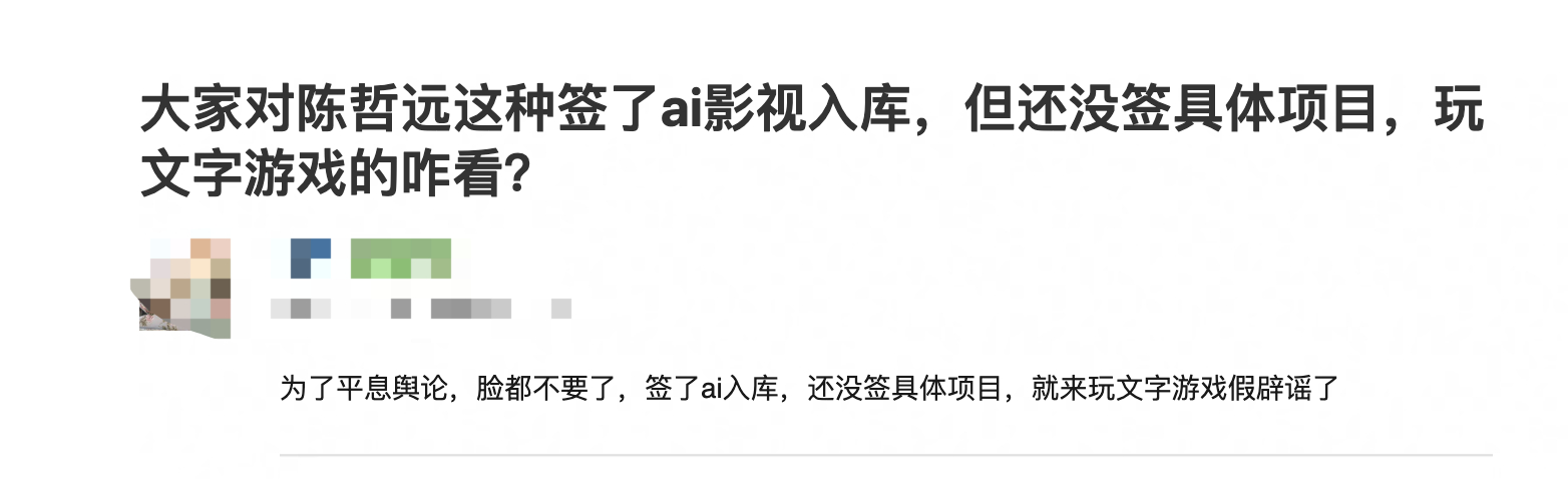 陈哲远工作室发文说未签署过任何具体ai影视授权,网友说:这是玩文字游戏,既赚了钱又不敢认,他估计不敢直接怼公寓,明明CEO都亲自点名了。 低情商演员失业 高情商更多休息 爱奇艺 穷疯了也得有底线 未授权AI艺人 AI观众