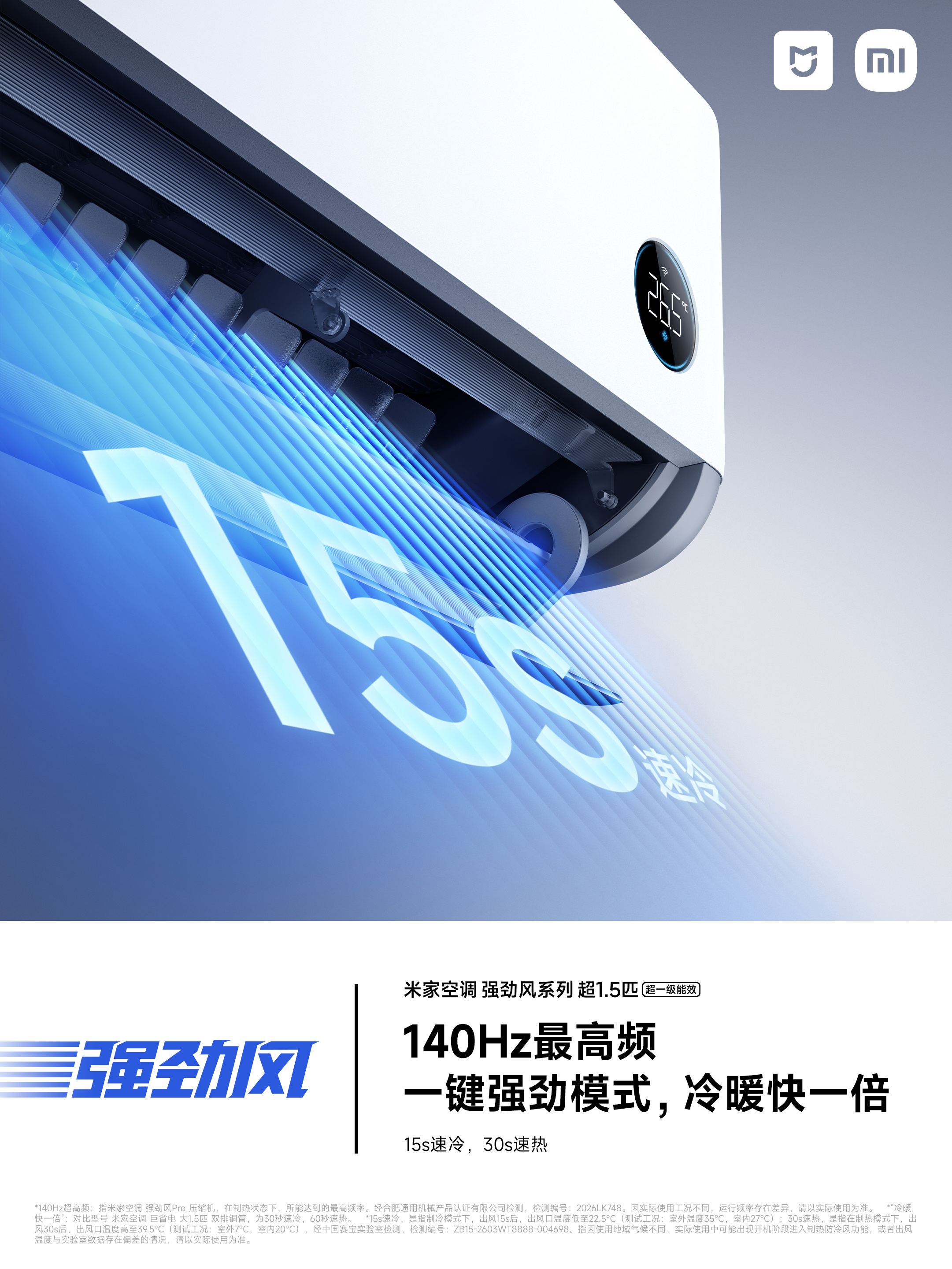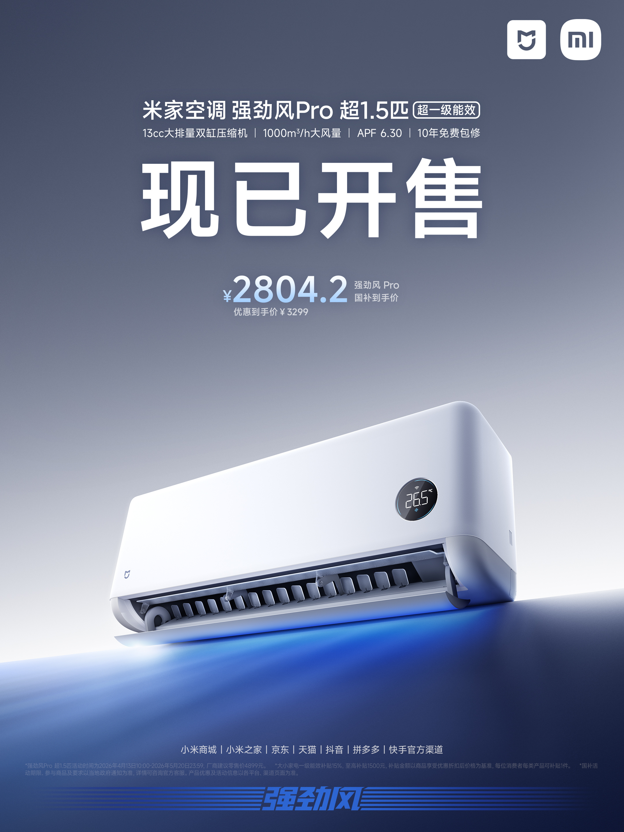 米家空调强劲风米家空调 强劲风Pro 超1.5匹超一级能效来了!