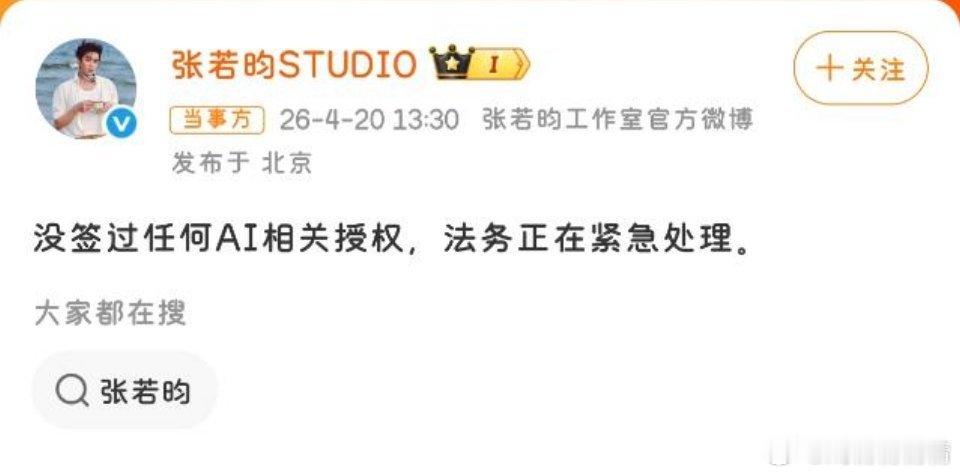 爱奇艺 穷疯了也得有底线疯了,艺人还没签署呢,就在大会上大屏幕了,目前出来辟谣的有张若昀和陈哲远,其他辟谣的有吗?未授权AI艺人 演员集体辟谣AI授权
