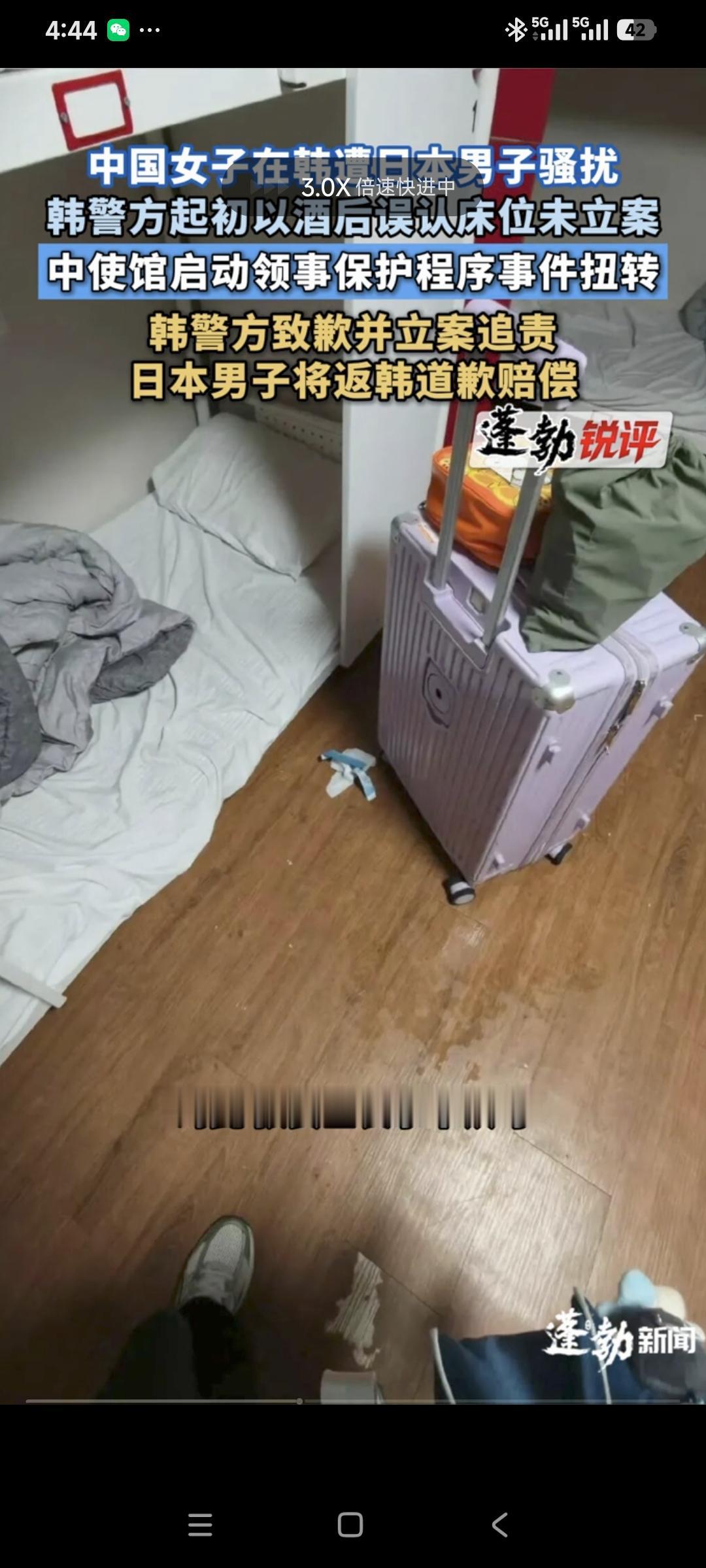 女孩这趟是去韩国看演唱会,为省钱住了男女混住十人间。那日本男之前就骚扰过她。事发后她忍着屈辱拍下证据,有俩外国目击者愿意作证。警察赶到前,那人已在其他住客斥责下跪地认错。