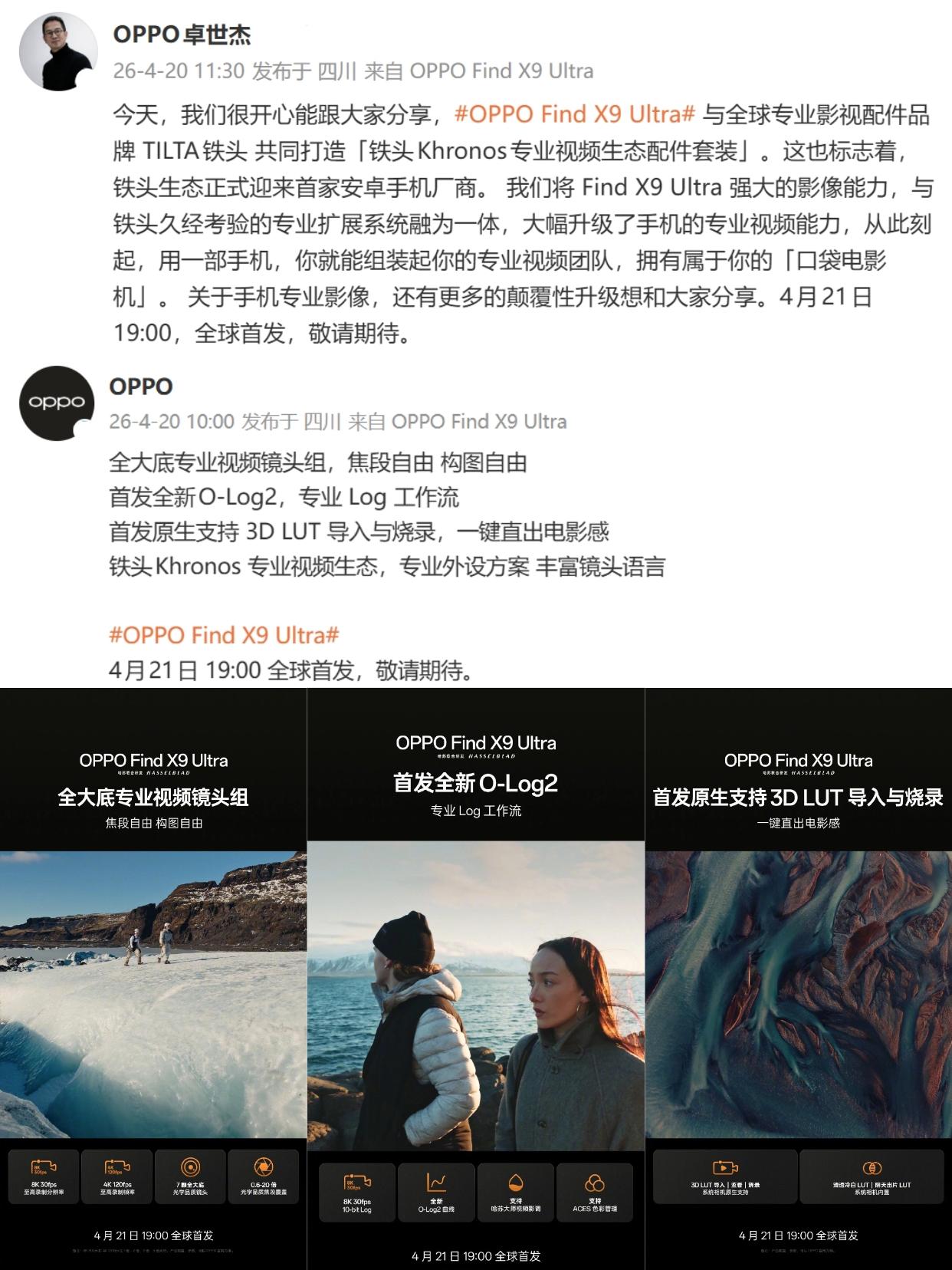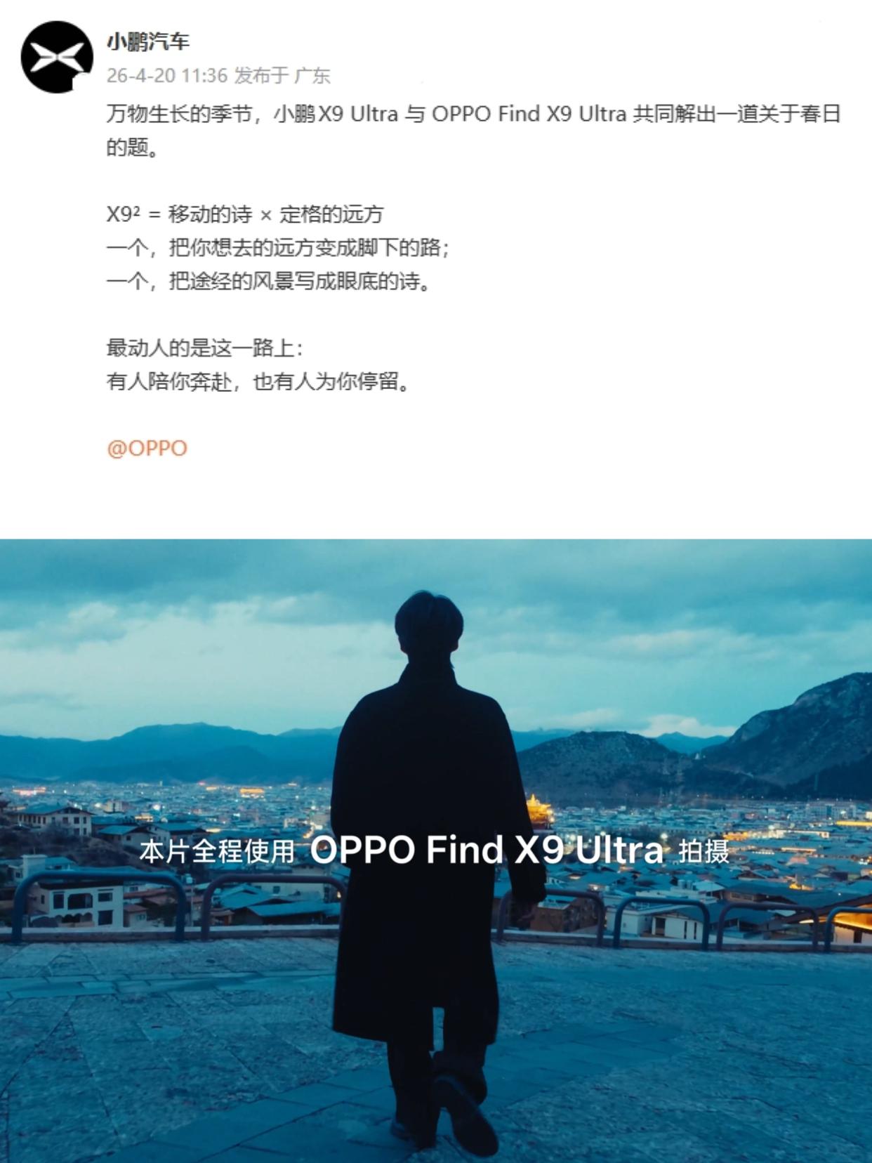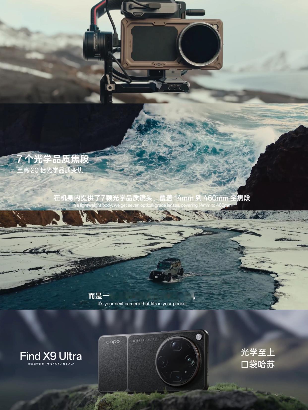 看OPPO拿着手机套装去冰岛拍的视频,真的很有电影感,逆光环境依旧有很出色的画面表现。还刷到小鹏新车X9 Ultra的宣传片还是用OPPO Find X9 Ultra拍的,实力这块真没得挑了吧?😲短片中不说是手机拍的话,光看画面真就和专业电影机拍的没差别啊……