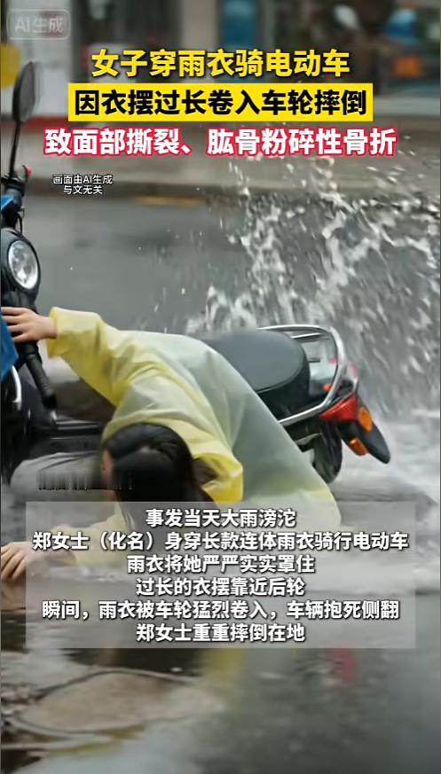 雨天骑车,谁都不愿意被淋着,可是选雨衣确实大有讲究,最重要的一点就是,一定不能有被卷进去的风险!郑女士这就是前车之鉴!
