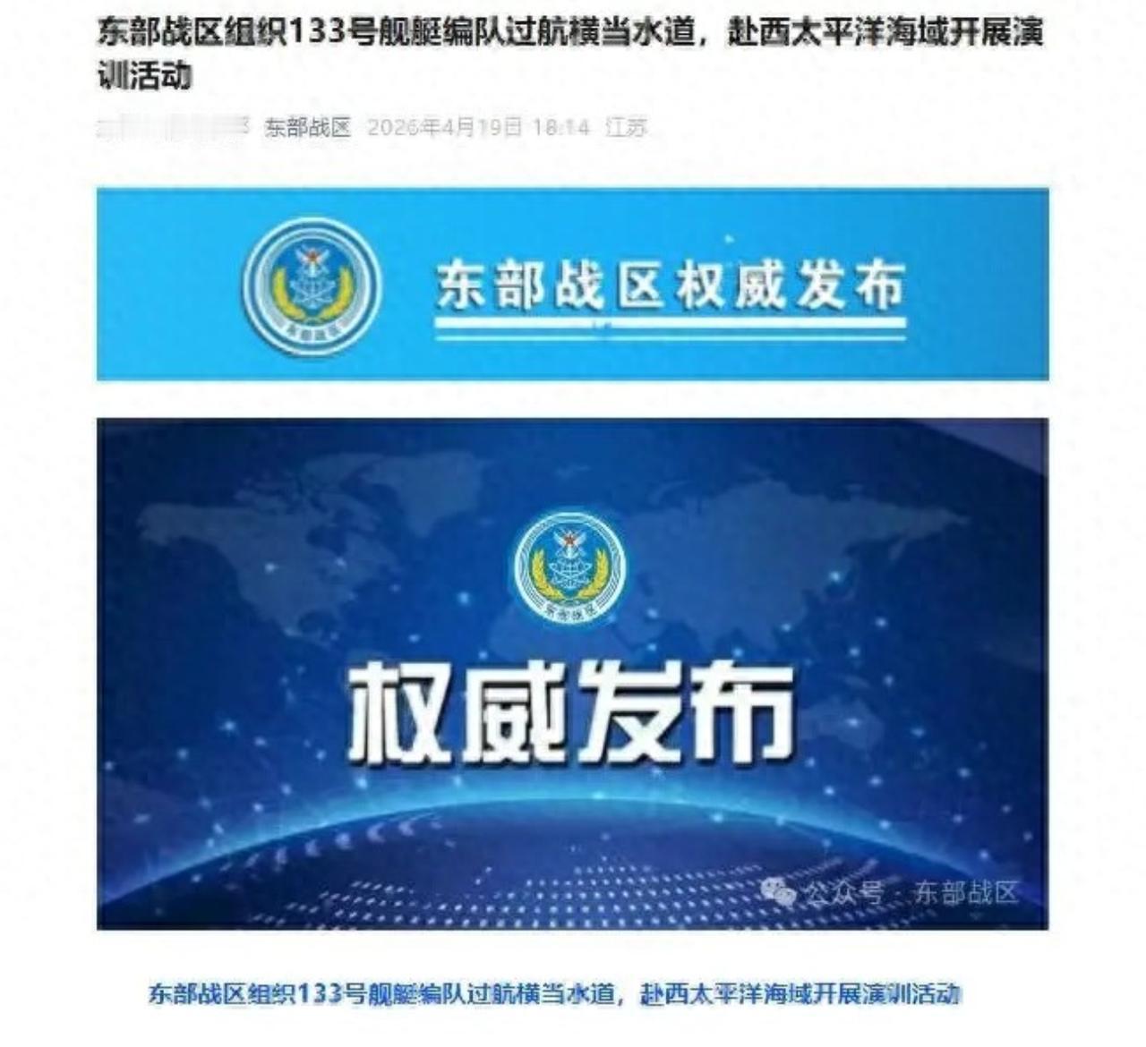 48 小时后,4 月 19 日,解放军东部战区宣布:133 号 “包头舰” 编队过航横当水道,赴西太平洋海域开展演训活动。