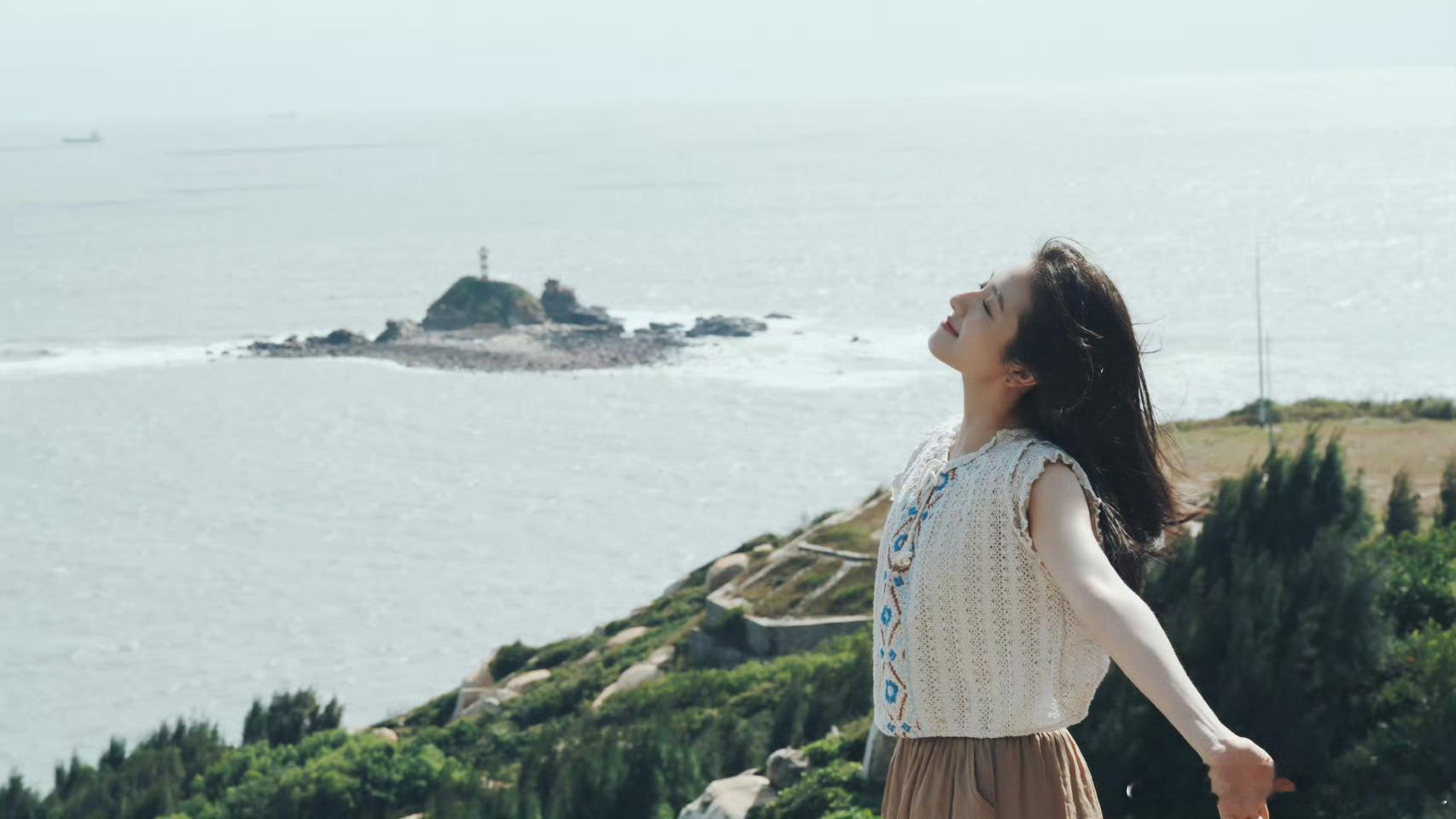 徐若晗,白色抹胸裙美腿,清澈优雅。徐若晗