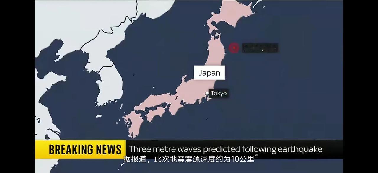 日本东北部发生里氏7.5级地震,但是在强震之后未发生海啸,浪高是0.8米。