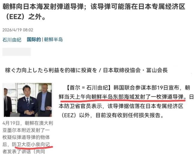 然后,4月19日清晨6点10分,朝鲜从咸镜南道新浦基地(潜艇基地)发射5枚弹道导弹,精准飞向日本海,落点就在日本专属经济区外,擦边不越线,警告意味十足!小泉进次郎当时正在澳大利亚访问,接到消息后在墨尔本机场紧急召开记者会,语无伦次说要“全力以赴做好危机管理”,还强调“导弹没进日本海域”,生怕民众恐慌!