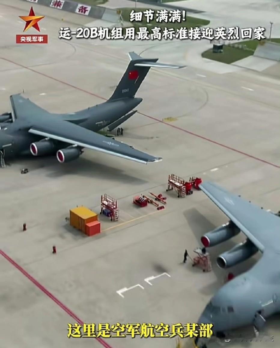 那啥,相比较以往的时候,这次咱们运-20B机组用最高标准迎接英烈们回家,这细节直接拉满了![奋斗][奋斗][奋斗]