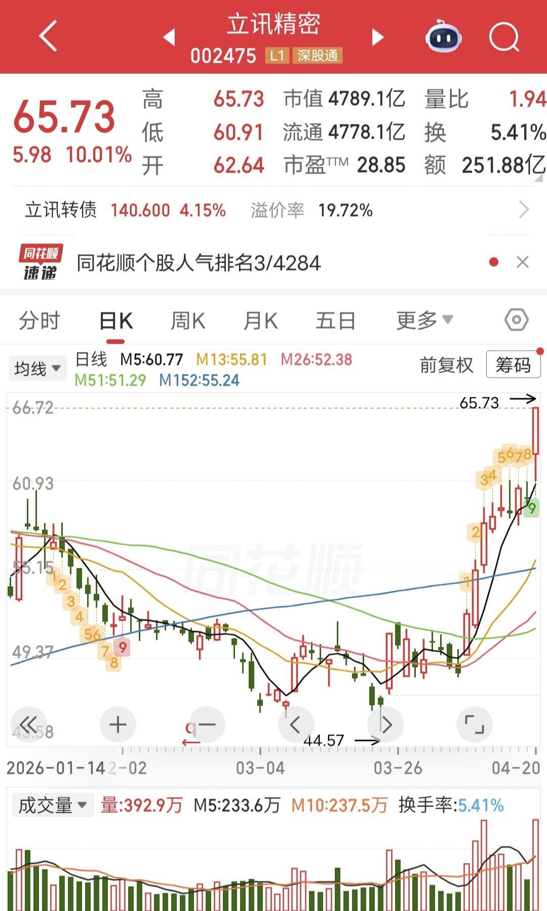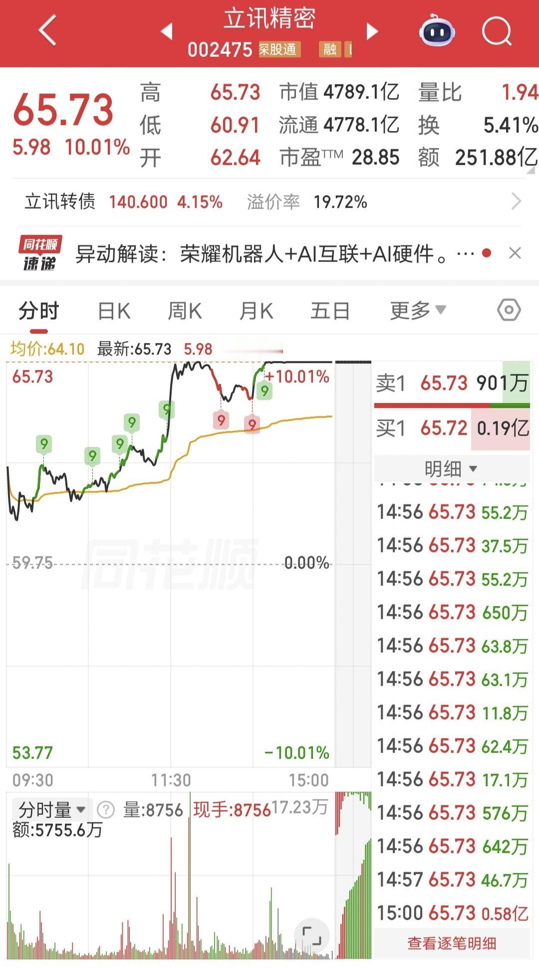 章盟主爆买7.88亿! 今天立讯精密尾盘涨停。 盘后龙虎榜显示,章盟主爆买7