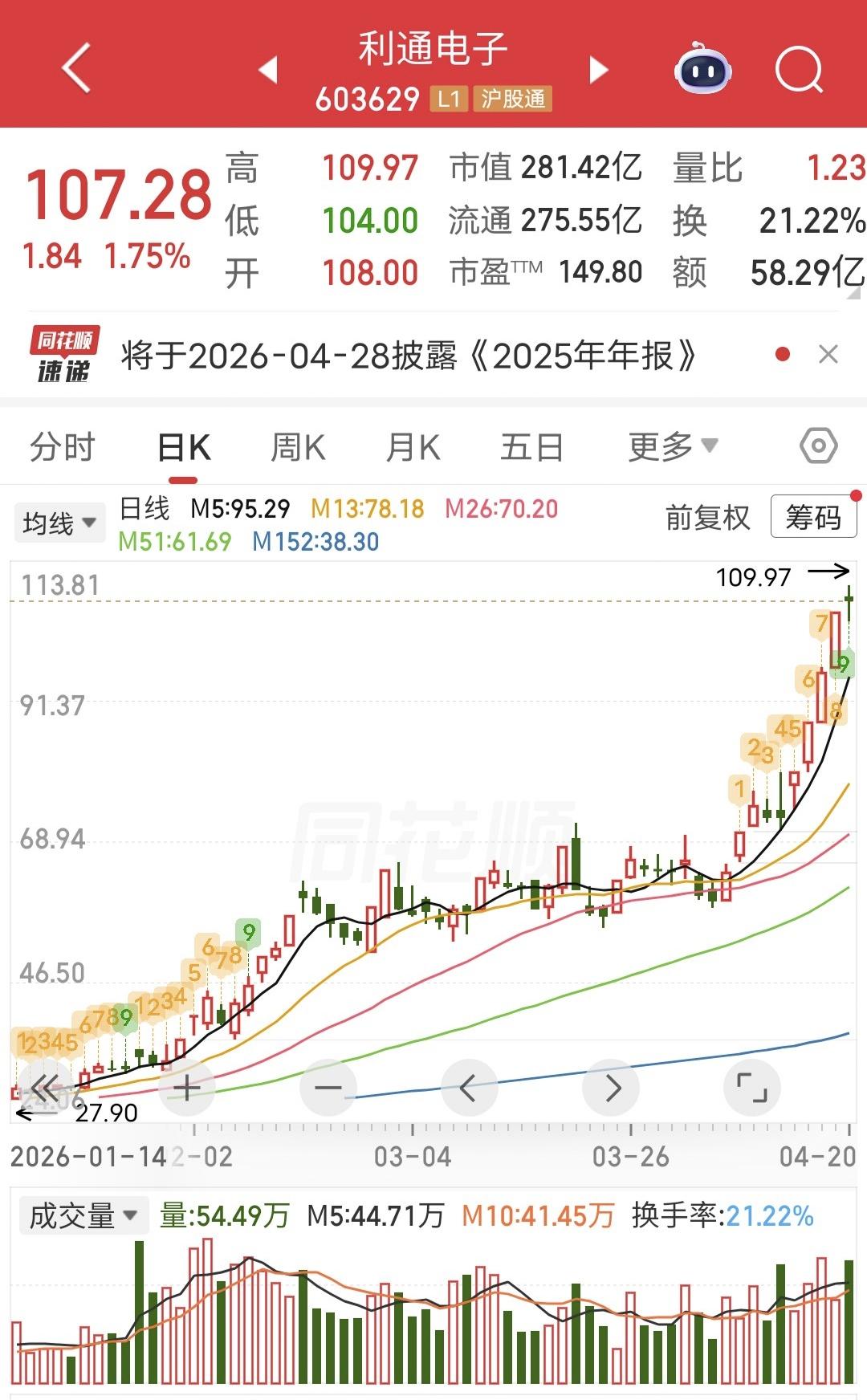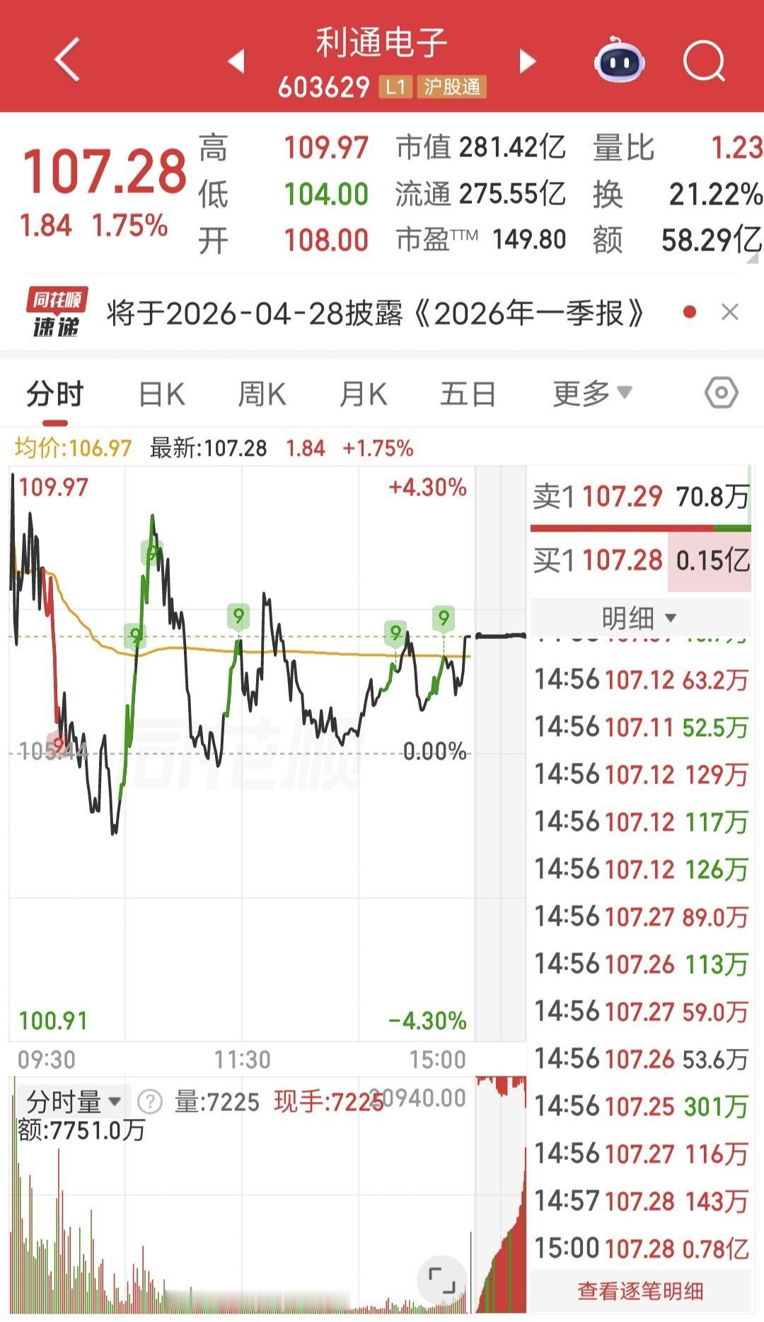 今天天利通电子冲高回落。