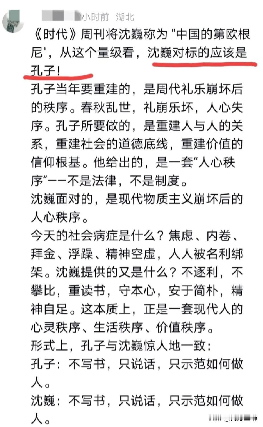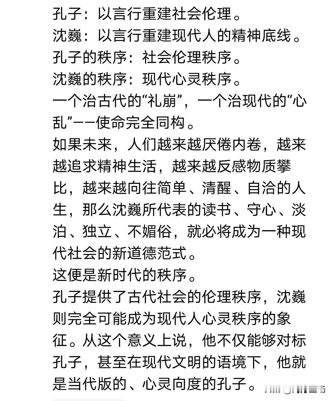 为了蹭流量,我把沈巍和胡适放一起比了比,写完自己都脸红。可刷到某大V长文,人家直接把沈巍封为“当代孔子”!什么“德配天地”“万世师表”,吹得天花乱坠。