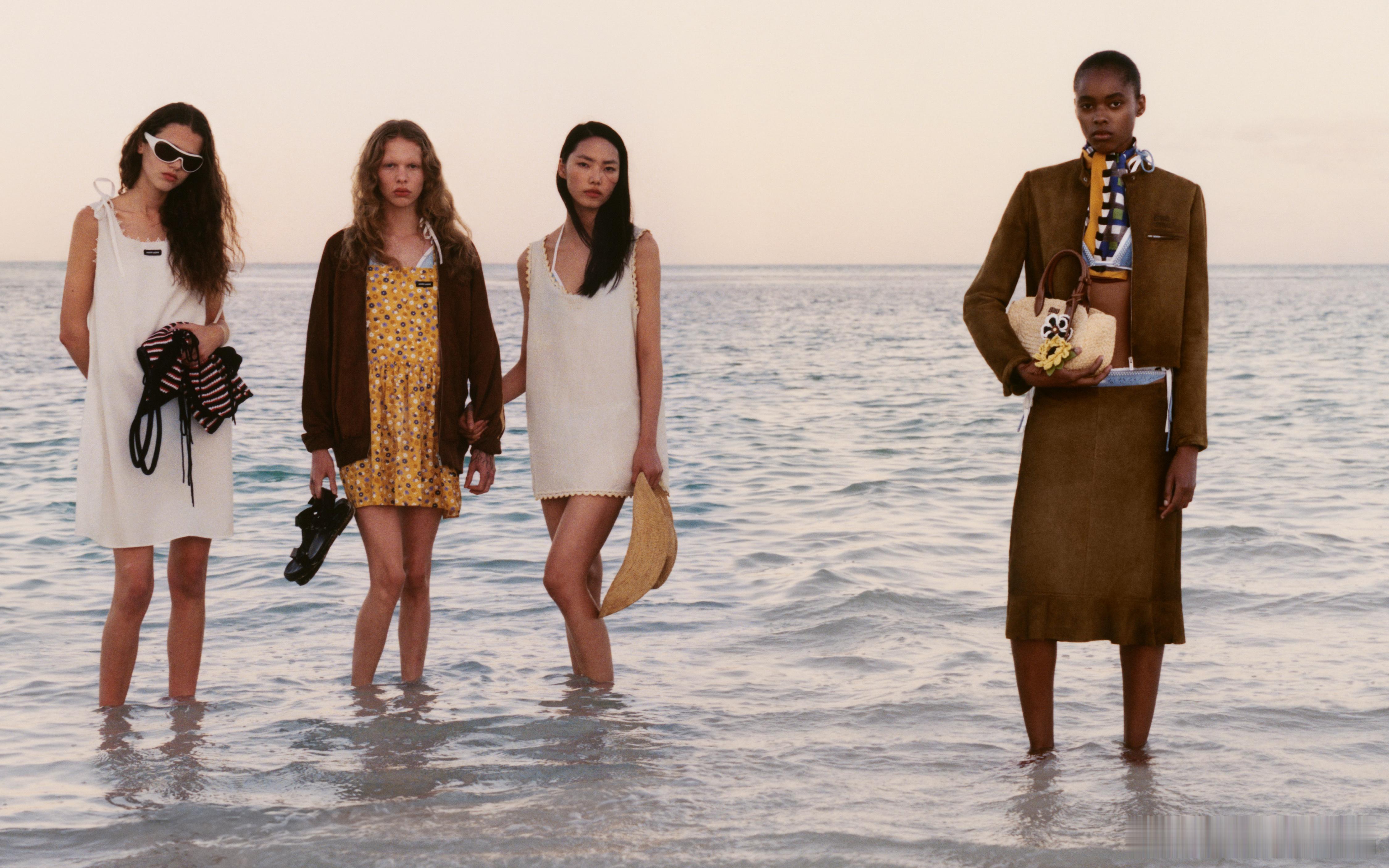 MIU MIU L'ETE' 2026广告大片品牌大使刘浩存、模特Sateen Besson、Lena Mantler及Lisa Mantler共同演绎创意总监:Miuccia Prada艺术指导:Christopher Simmonds摄影及导演:Jeano Edwards造型:Lotta Volkova