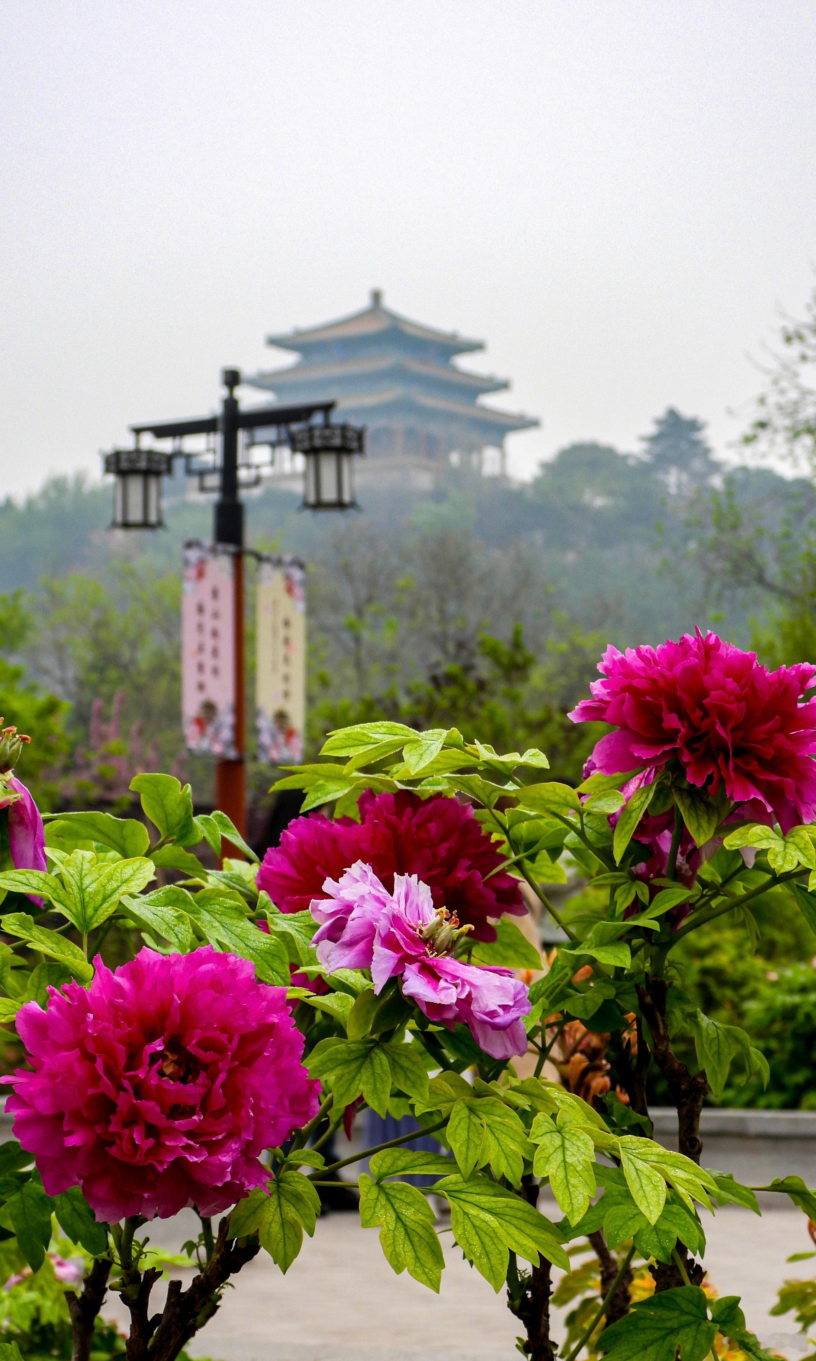 【景山公园】春深临禁苑,国色满高台。叠艳凝清露,繁香绕玉阶。瑶台云气近,古殿晓烟开。凭揽京华盛,临风醉一杯。摄影